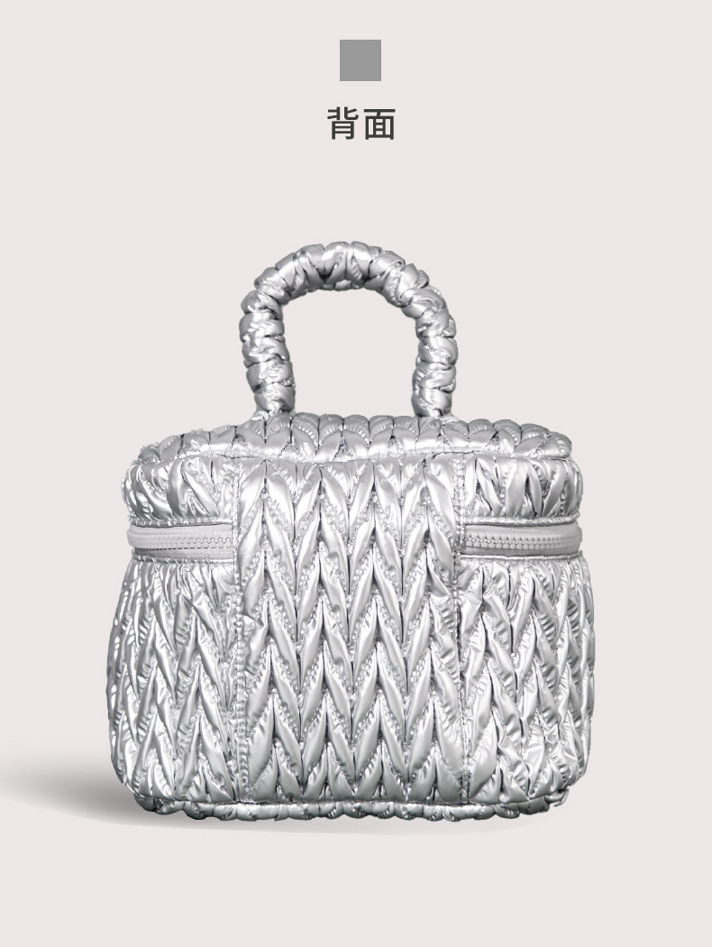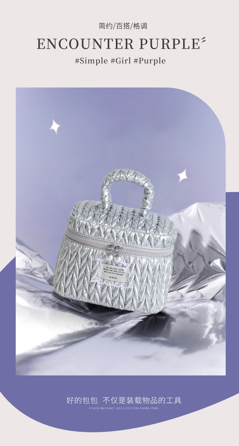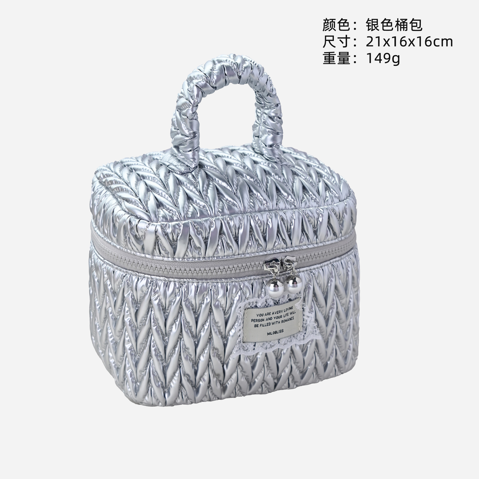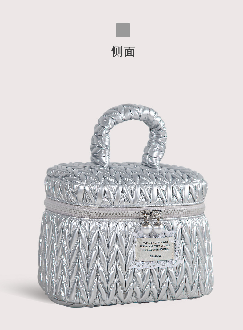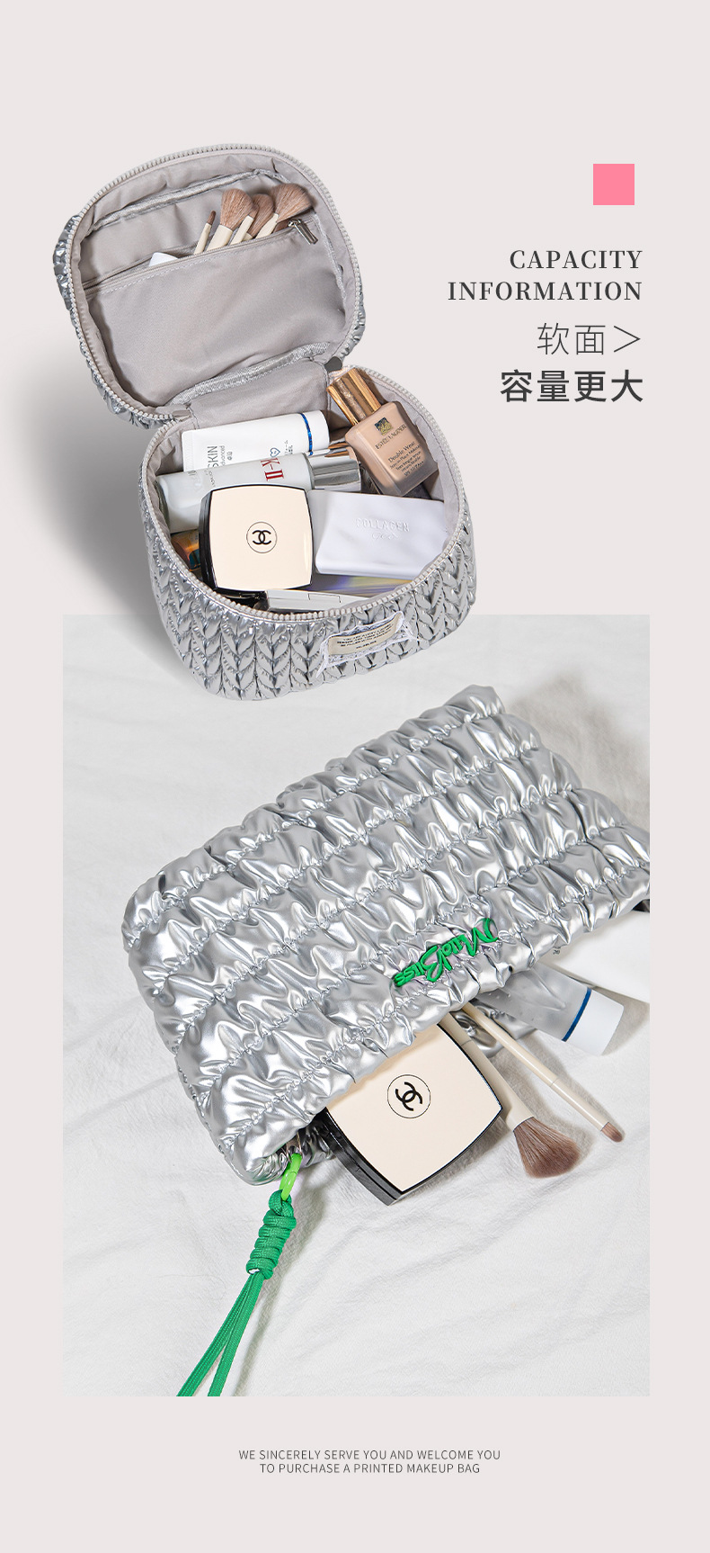 새로운 맞춤형 ins 스타일 대용량 실버 화장품 가방 대형 휴대용 보관 가방 하이 엔드 다운 질감 방수스토어 가기