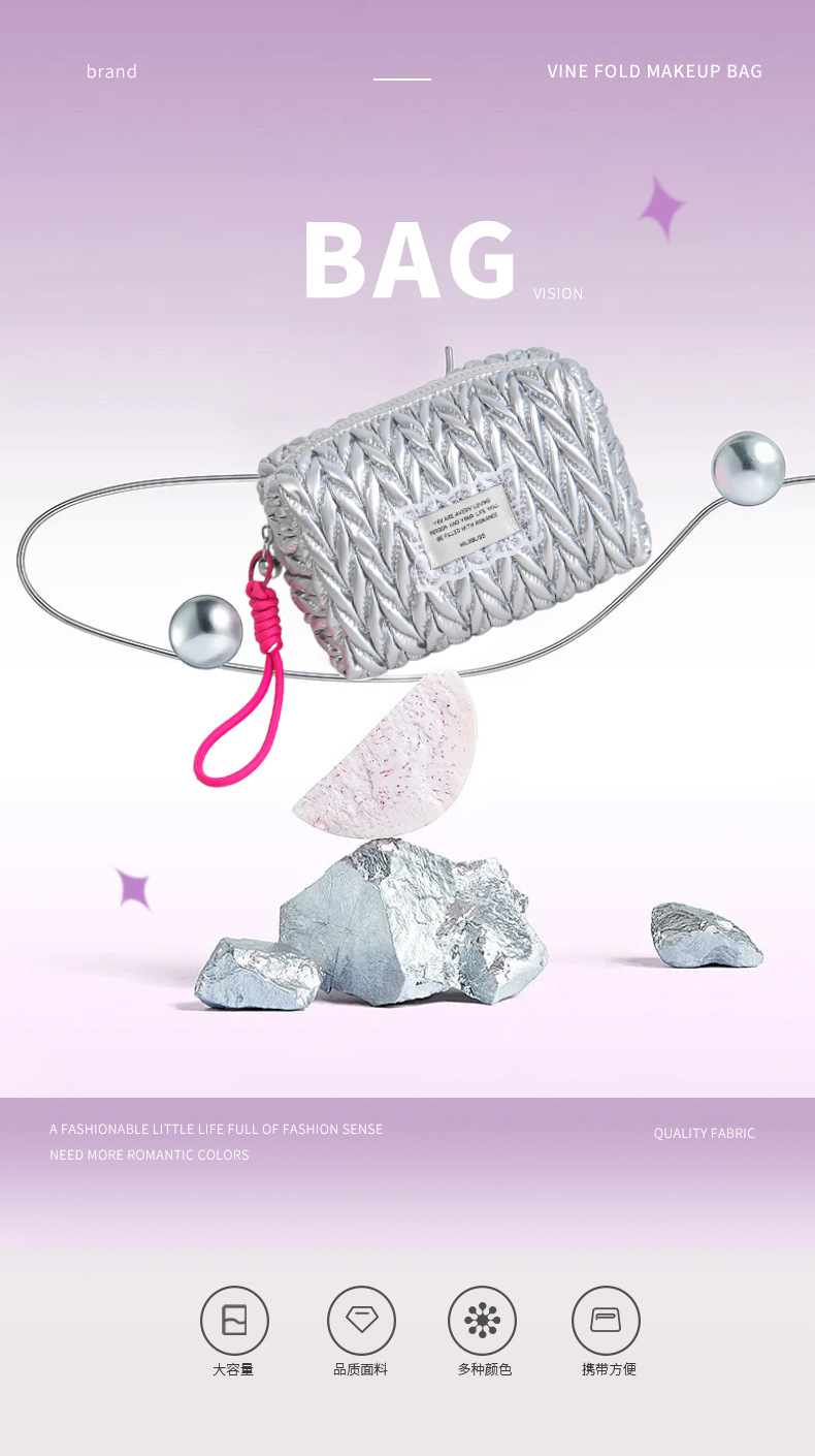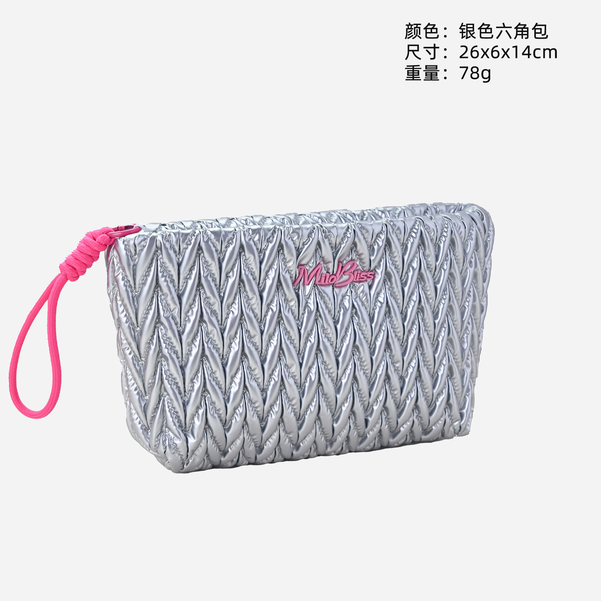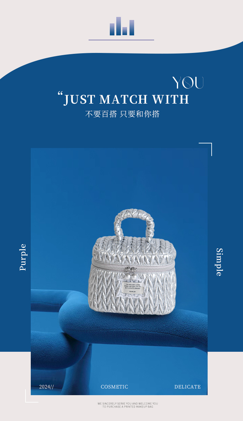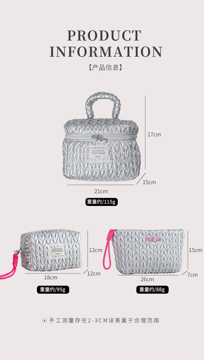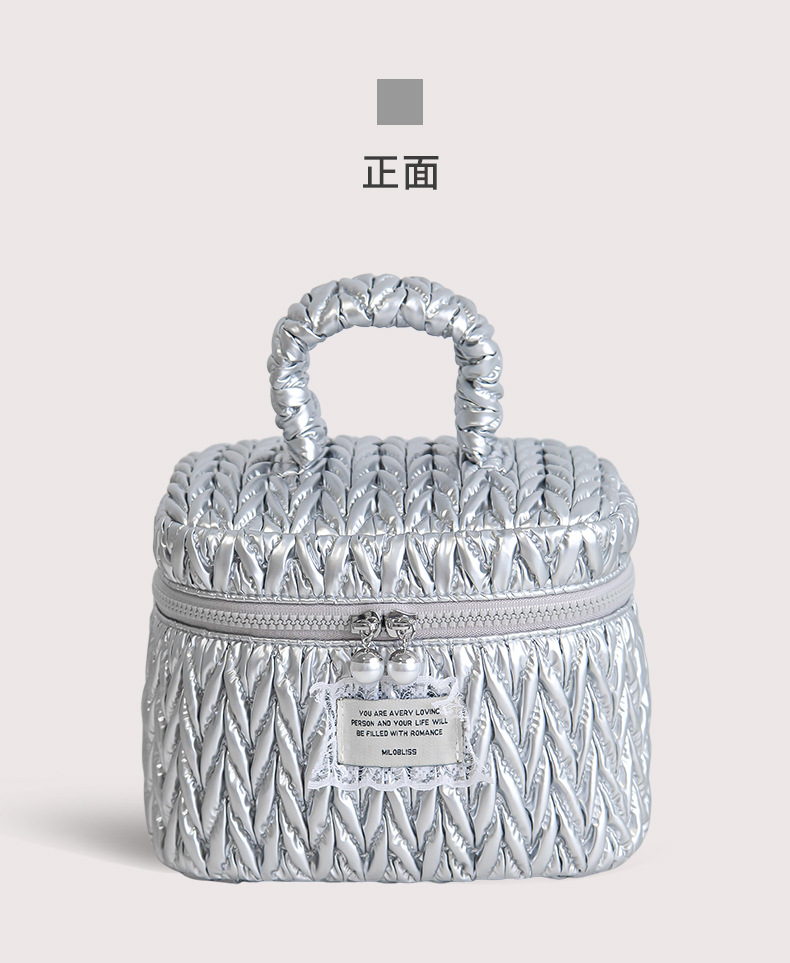 새로운 맞춤형 ins 스타일 대용량 실버 화장품 가방 대형 휴대용 보관 가방 하이 엔드 다운 질감 방수스토어 가기