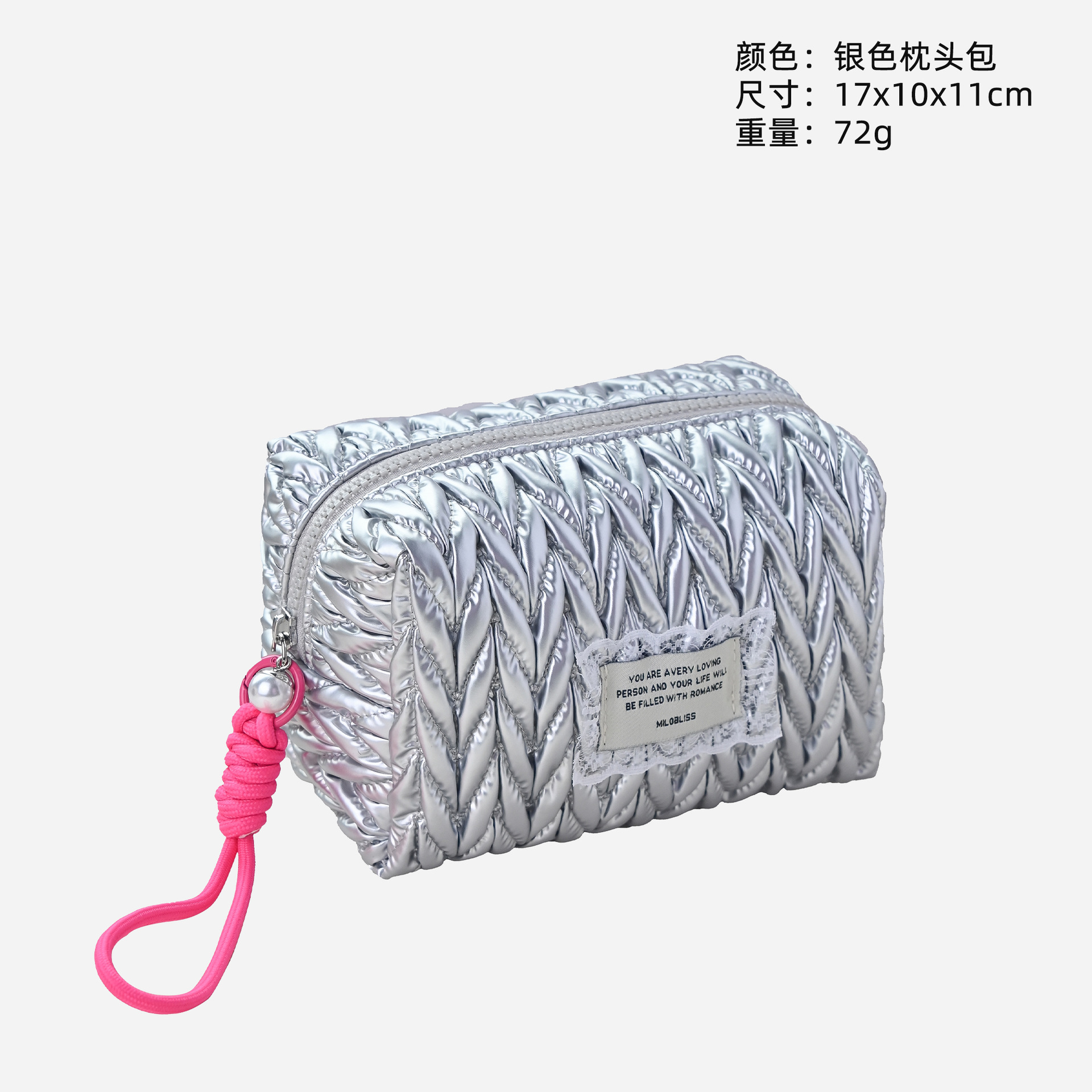 새로운 맞춤형 ins 스타일 대용량 실버 화장품 가방 대형 휴대용 보관 가방 하이 엔드 다운 질감 방수