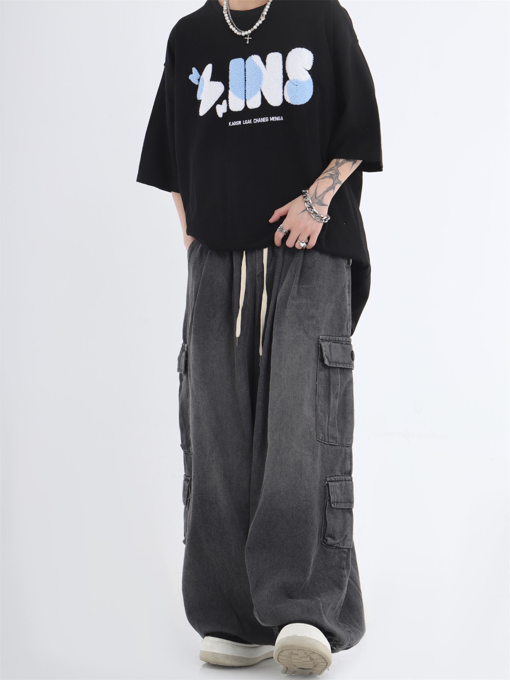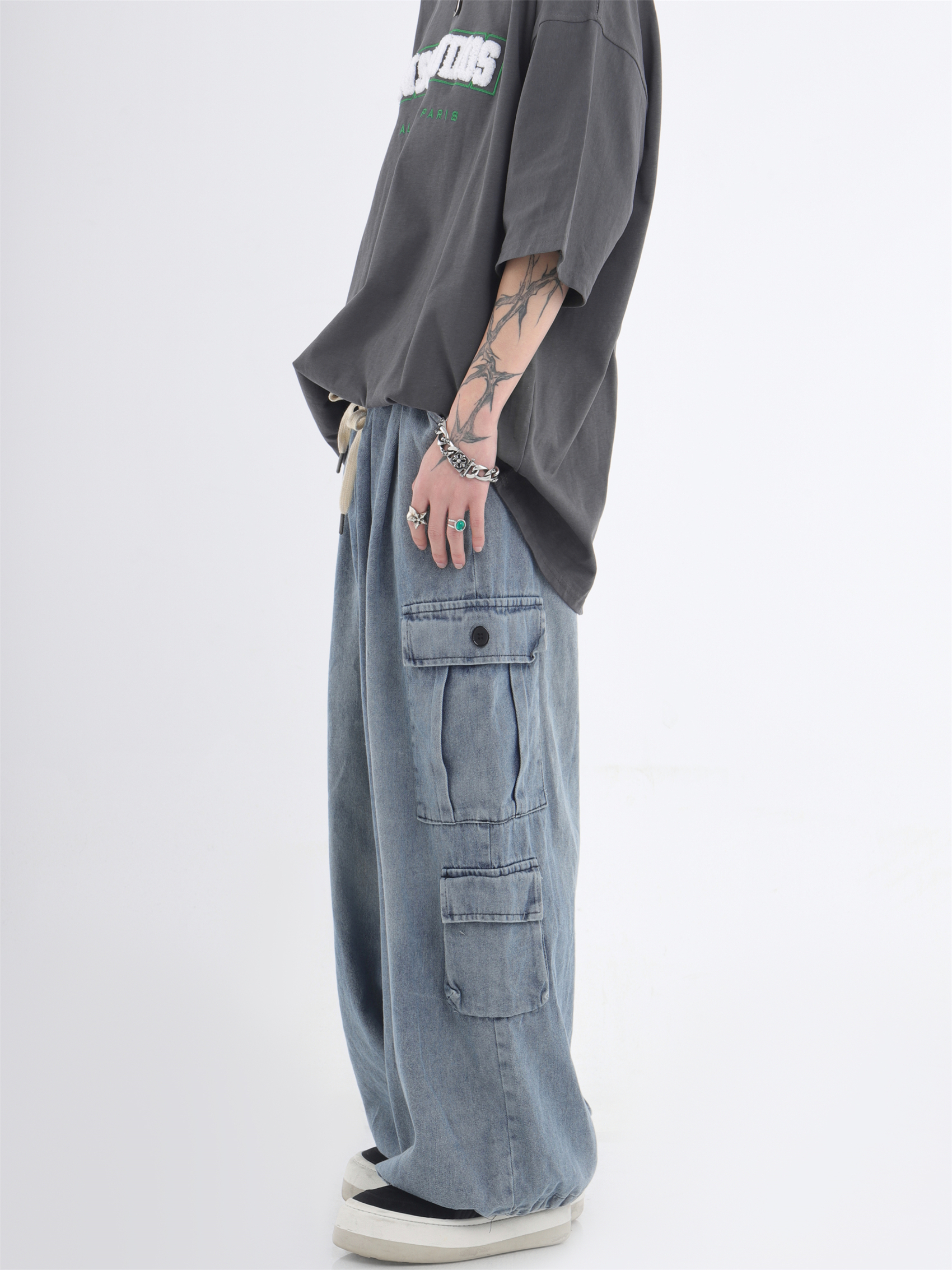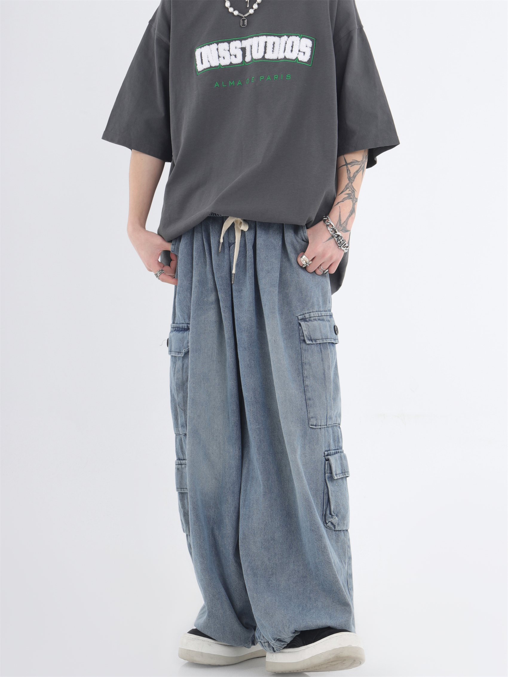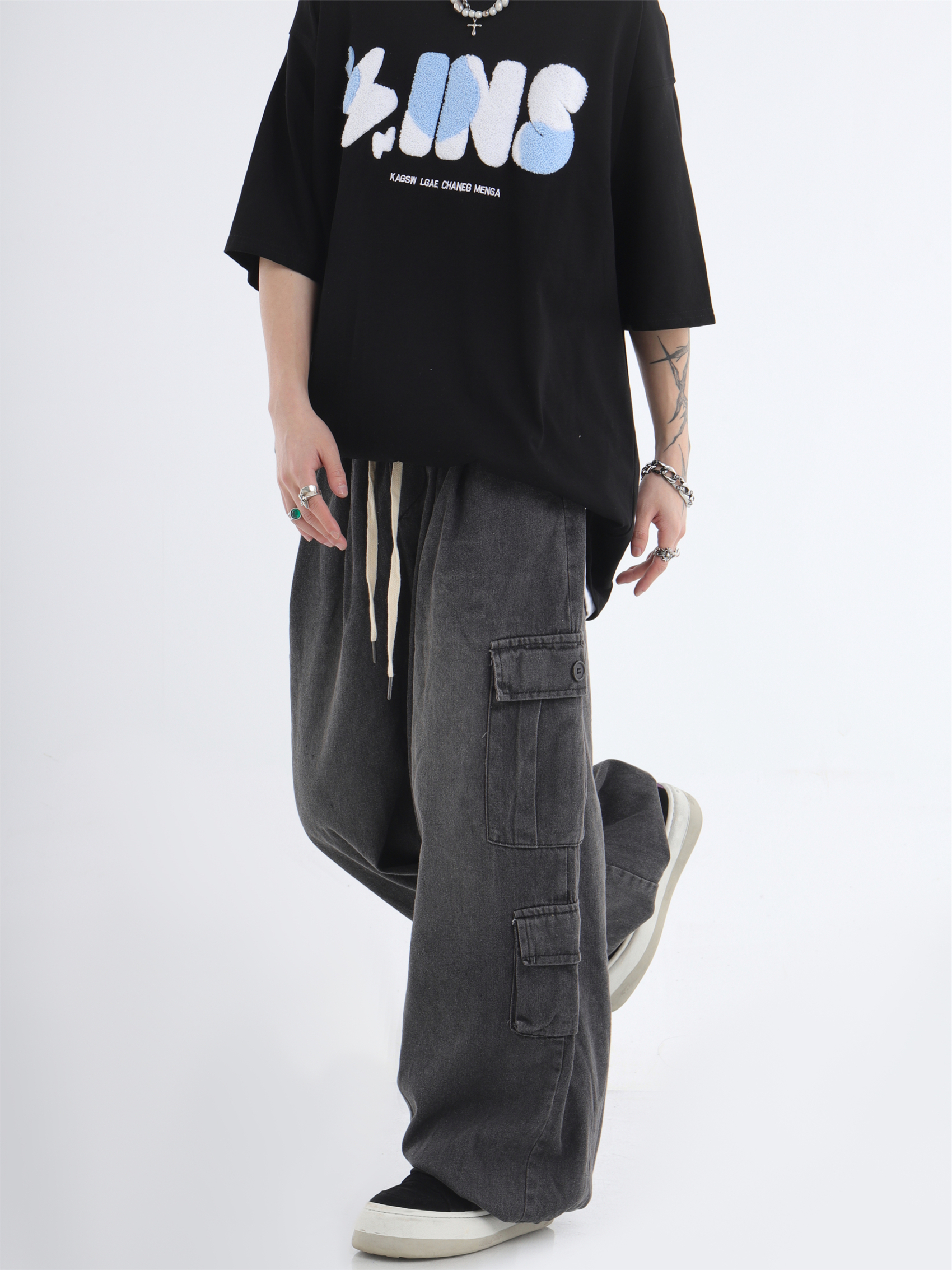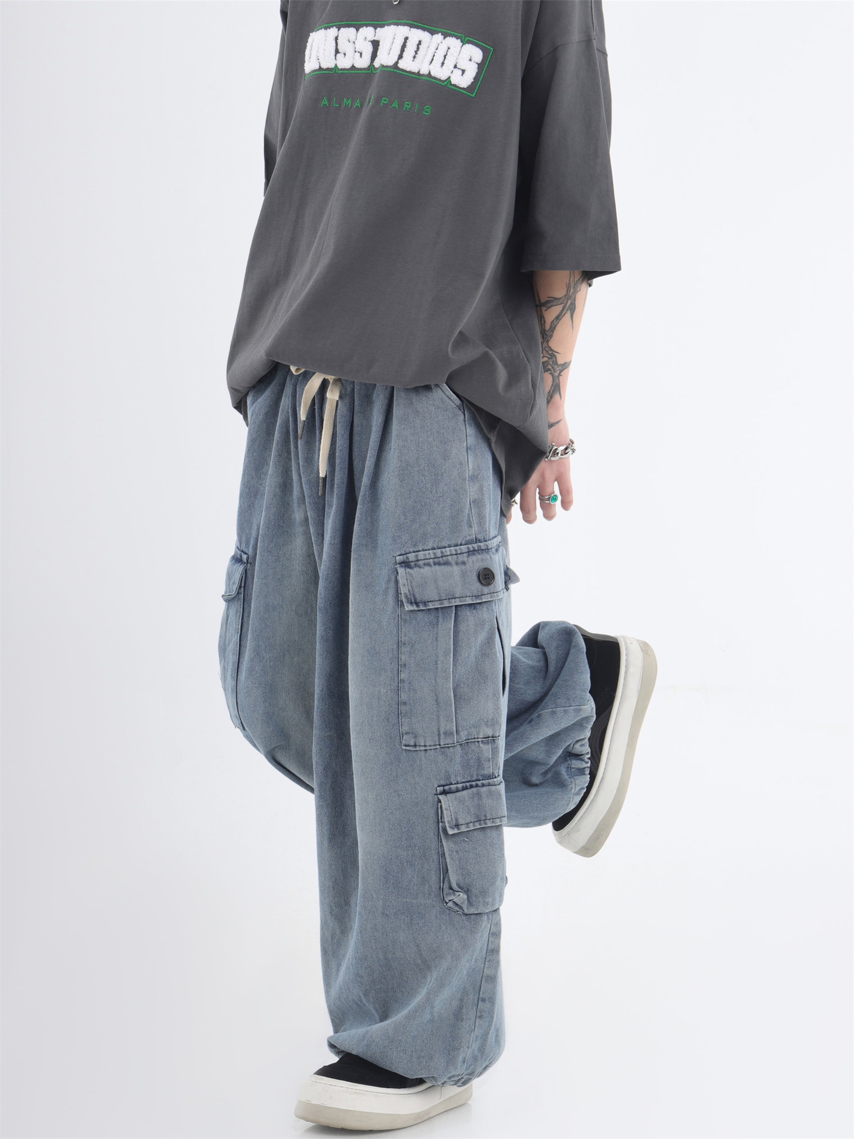 대외 무역 2024 3 차원 패치 포켓 청바지 전국 패션 브랜드 힙합 커플 세탁 느슨한 넓은 다리 바지스토어 가기