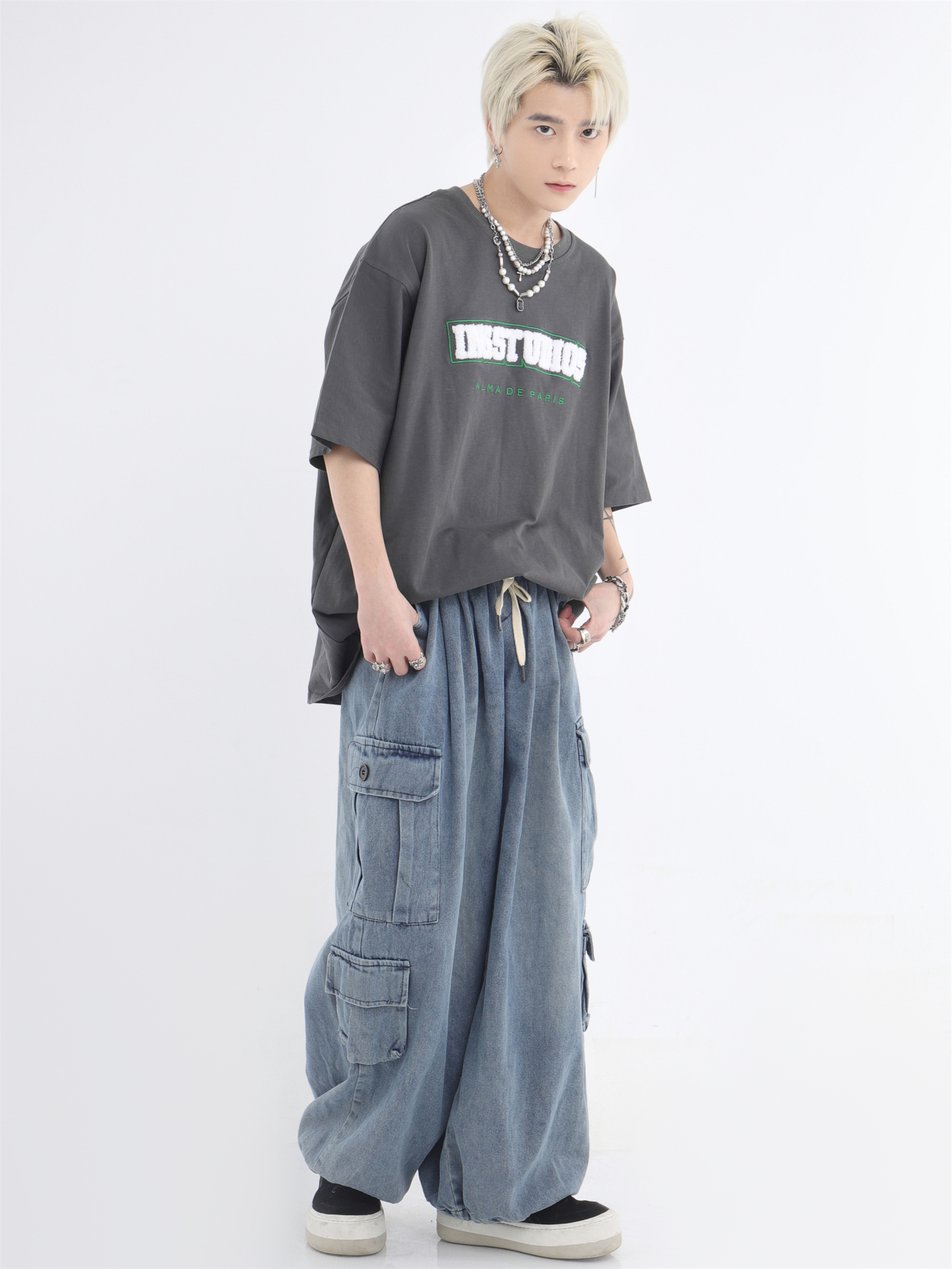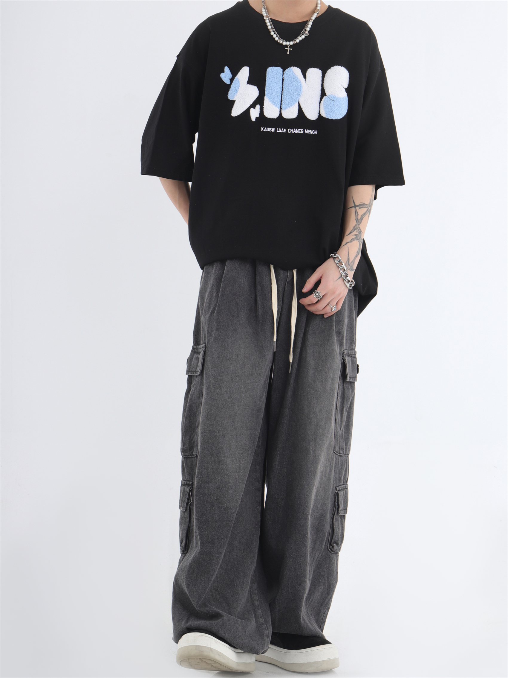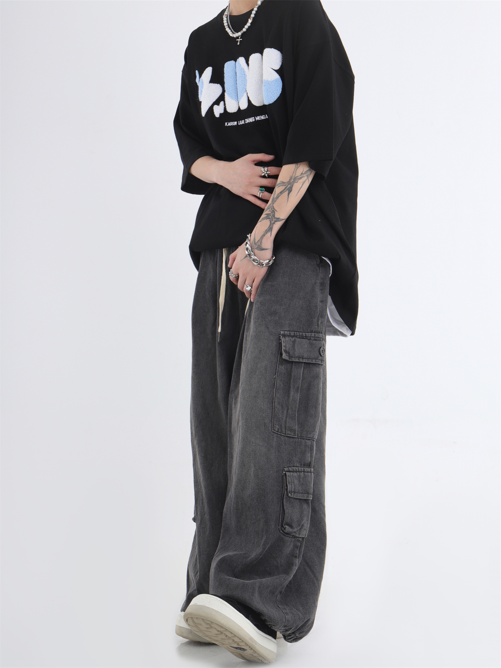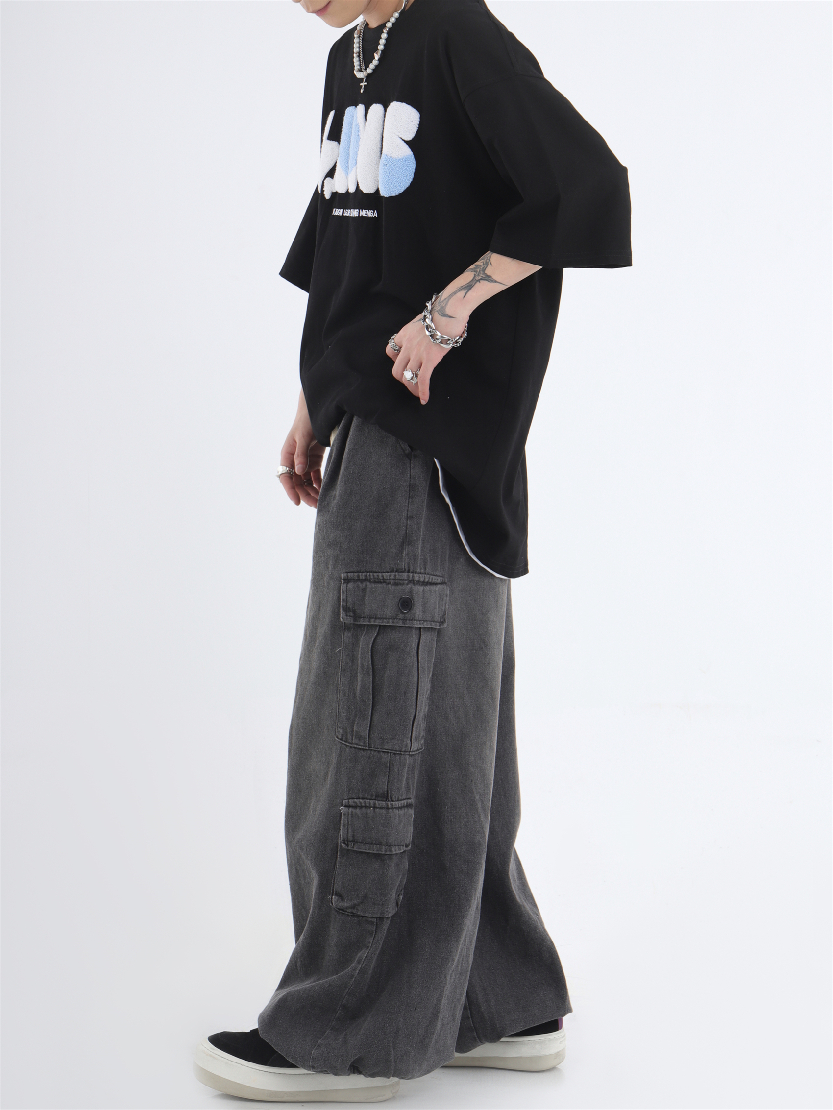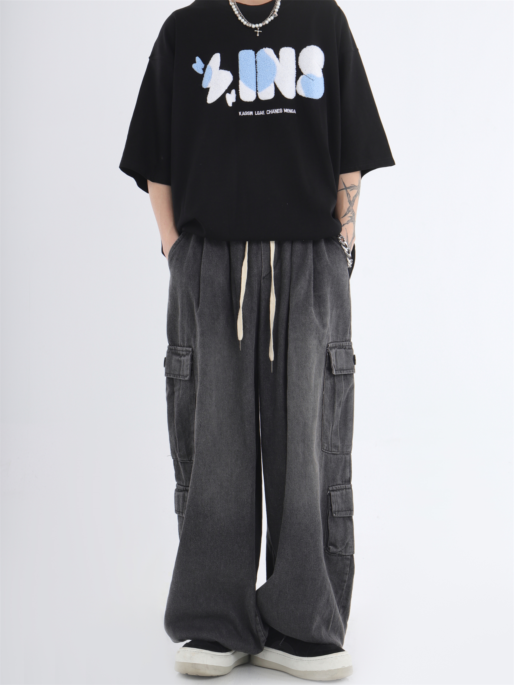 대외 무역 2024 3 차원 패치 포켓 청바지 전국 패션 브랜드 힙합 커플 세탁 느슨한 넓은 다리 바지스토어 가기