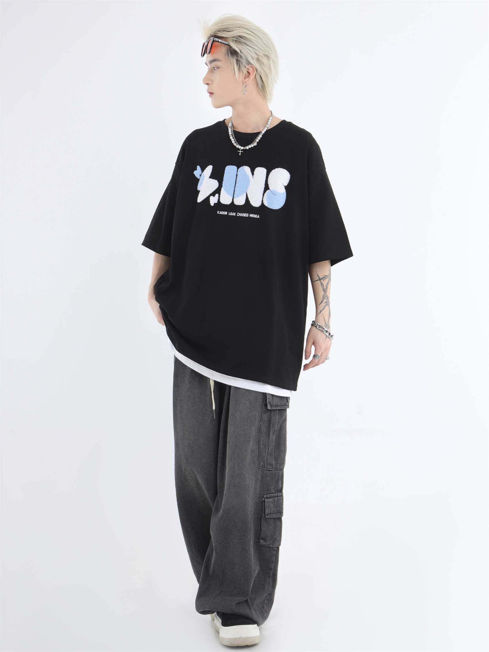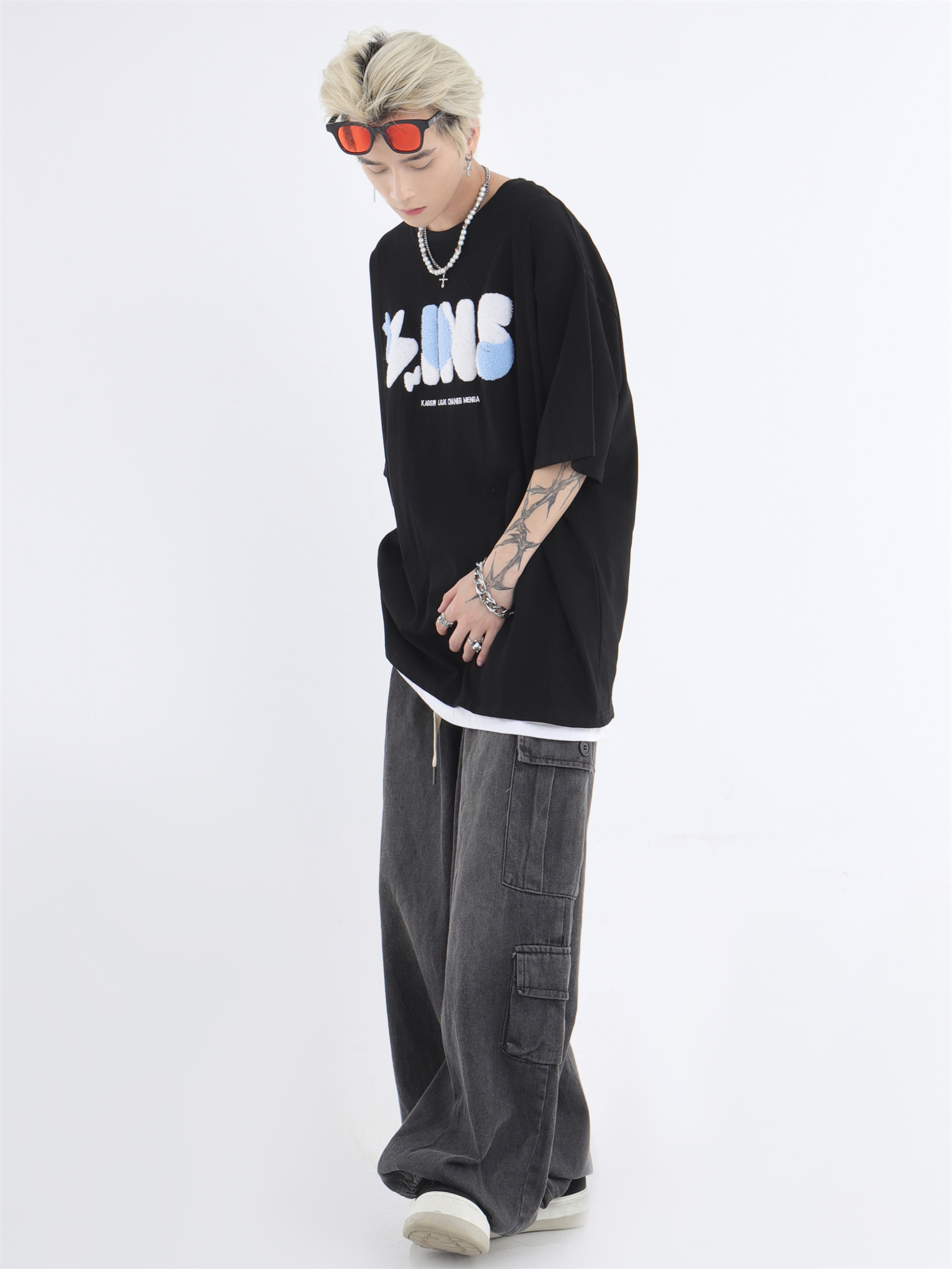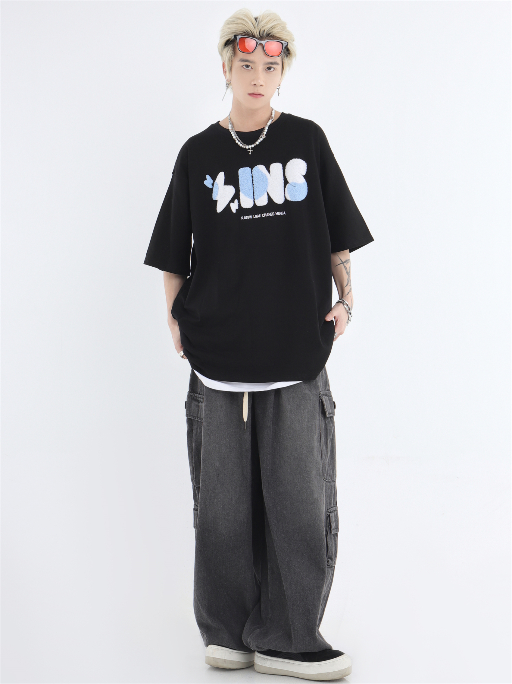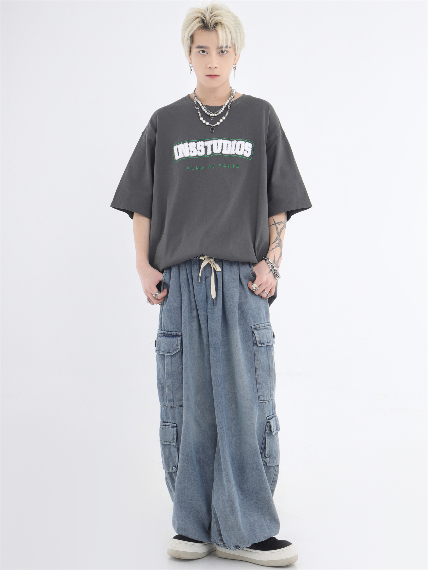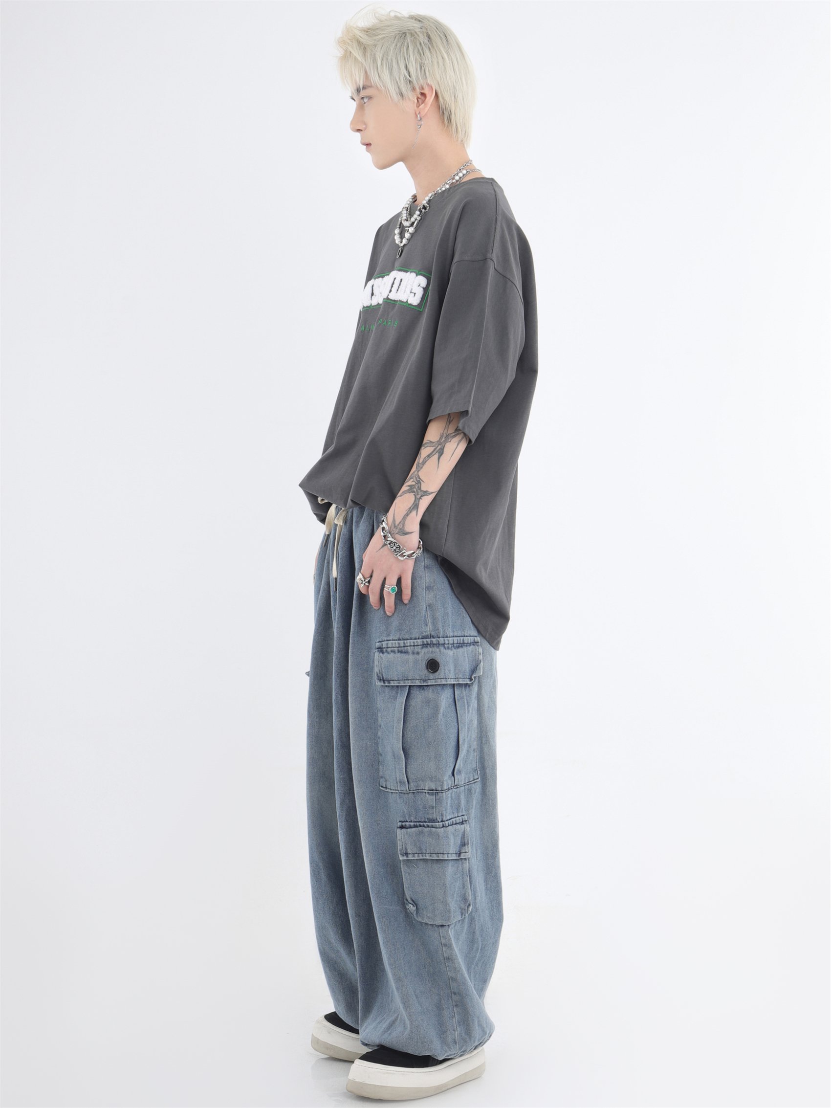 대외 무역 2024 3 차원 패치 포켓 청바지 전국 패션 브랜드 힙합 커플 세탁 느슨한 넓은 다리 바지스토어 가기
