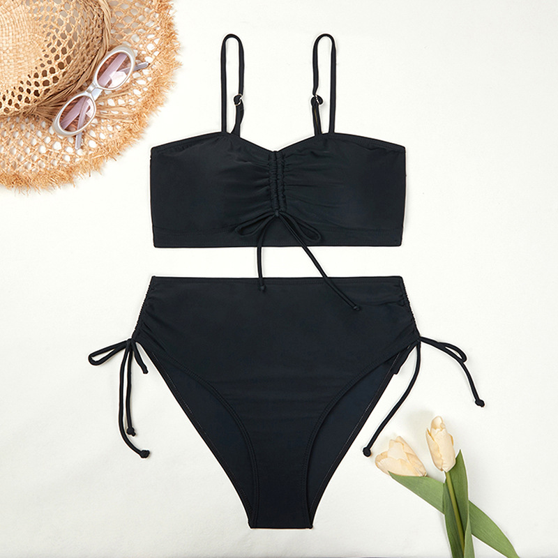 제조업체는 2025 여성 유럽 및 미국 스플릿 튜브 탑 비키니 솔리드 컬러 여성 수영복 수영복 스포츠 스타일을 공급합니다.