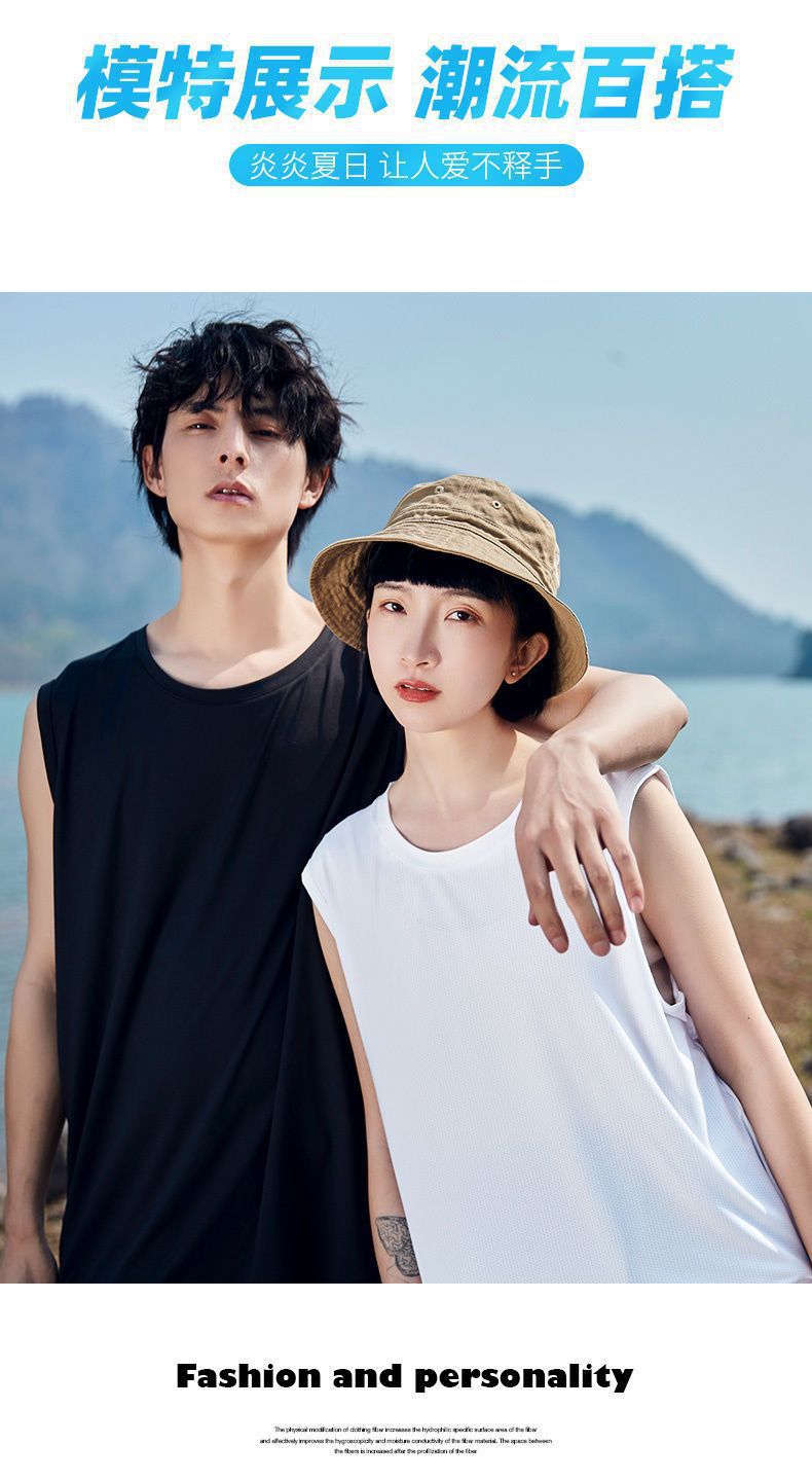 아이스 실크 조끼 남자 여름 외부 얇은 느슨한 플러스 사이즈 메쉬 통기성 스포츠 피트니스 빠른 건조 소매 티셔츠 트렌디스토어 가기