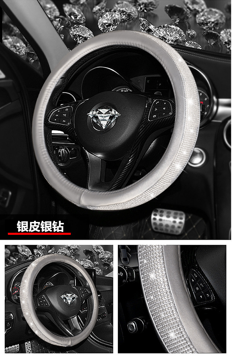 다이아몬드 핸들 세트 한국 패션 여성 사계절 귀여운 풀 다이아몬드 자동차 스티어링 휠 커버를 가진 국경 핫 다이아몬드 라인 스톤스토어 가기