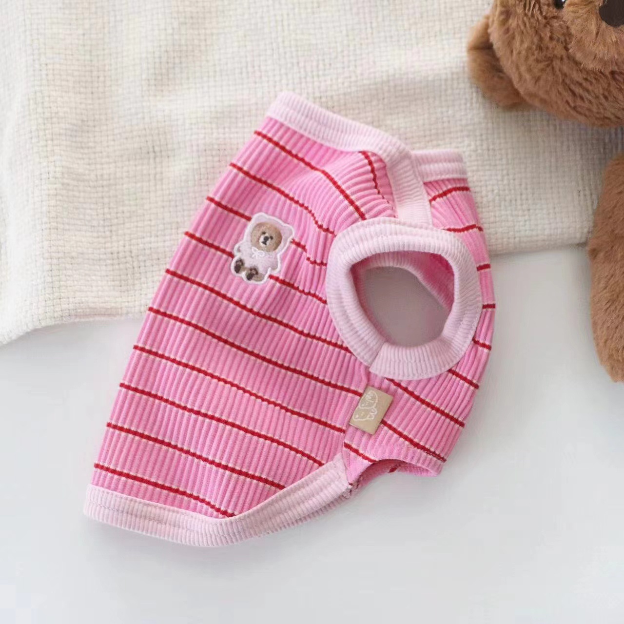 얇은 테디 비터 요크셔 작은 개 고양이 개 옷 여름 줄무늬 애완 동물 조끼스토어 가기