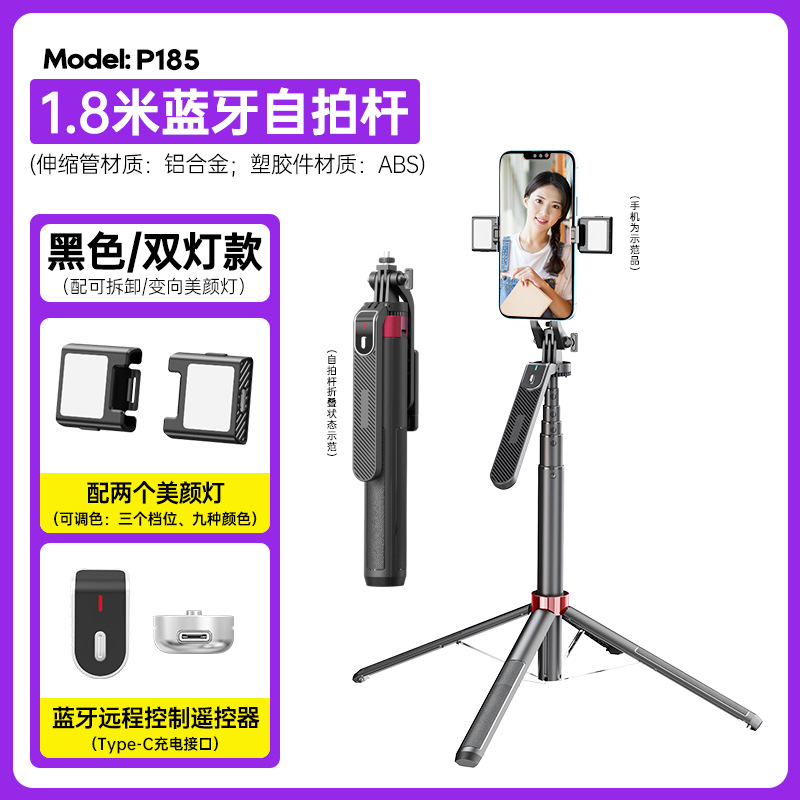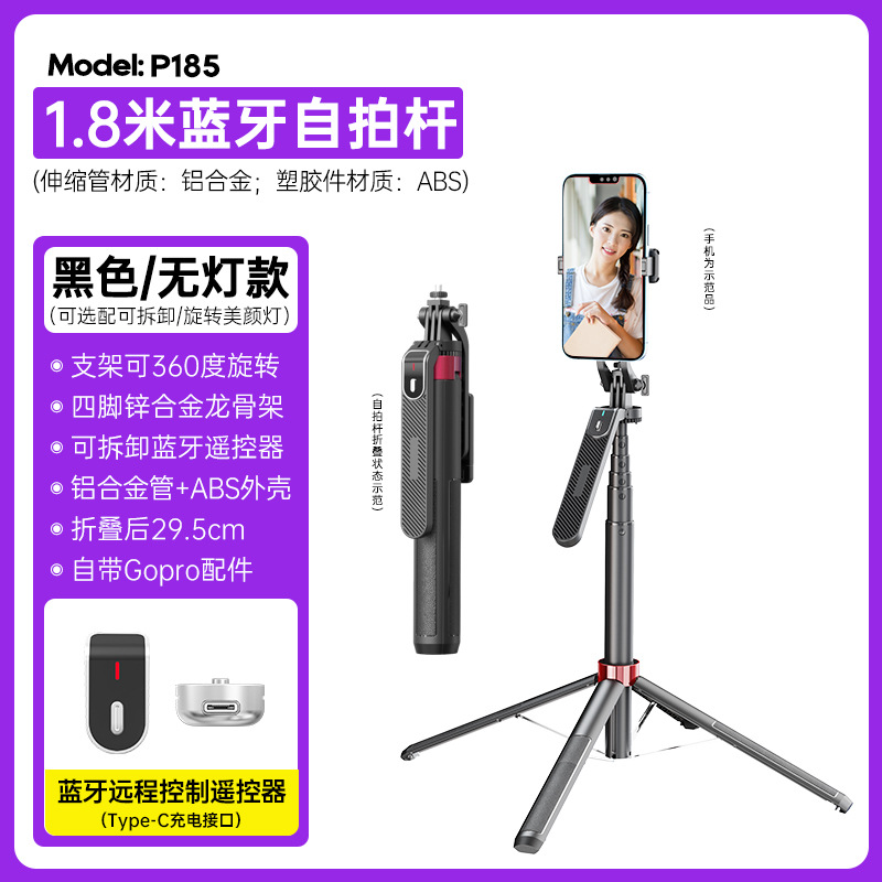 P185 개인 맞춤형 셀카봉, 흔들림 방지, 확장 가능, 사진 촬영용 핸드헬드 셀카봉, 블루투스 휴대폰 셀카봉스토어 가기