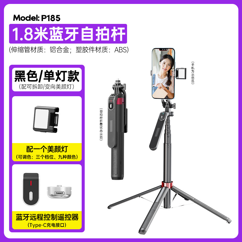 • P185-V1 셀카 스틱/알루미늄 합금/단일 램프
