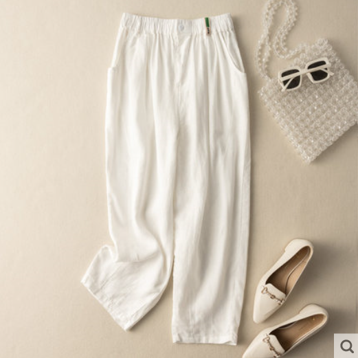 고급 텐셀 리넨 바지 여성용 바지 여름 얇은 2024 새로운 폭발 바지 플러스 사이즈 캐주얼 자른 면 및 리넨 바지