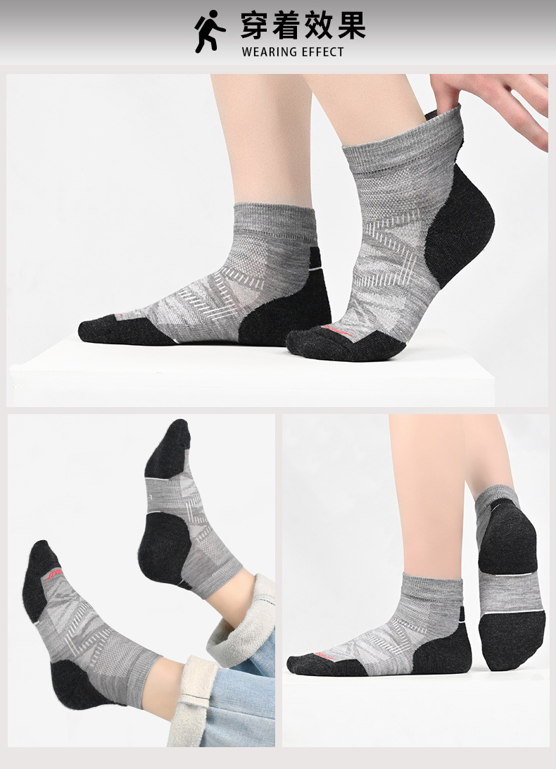 메리노 울 양말 짧은 튜브 야외 하이킹 하이킹 달리기 양말 타월 바닥 보트 양말 4 계절 통기성 스포츠 양말