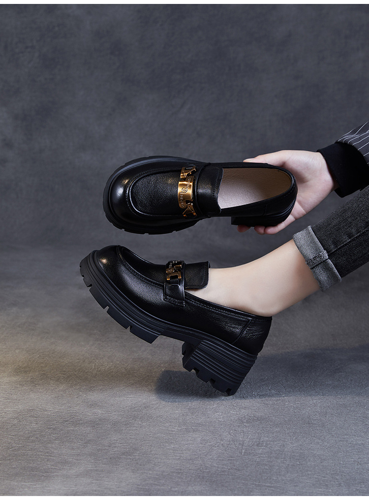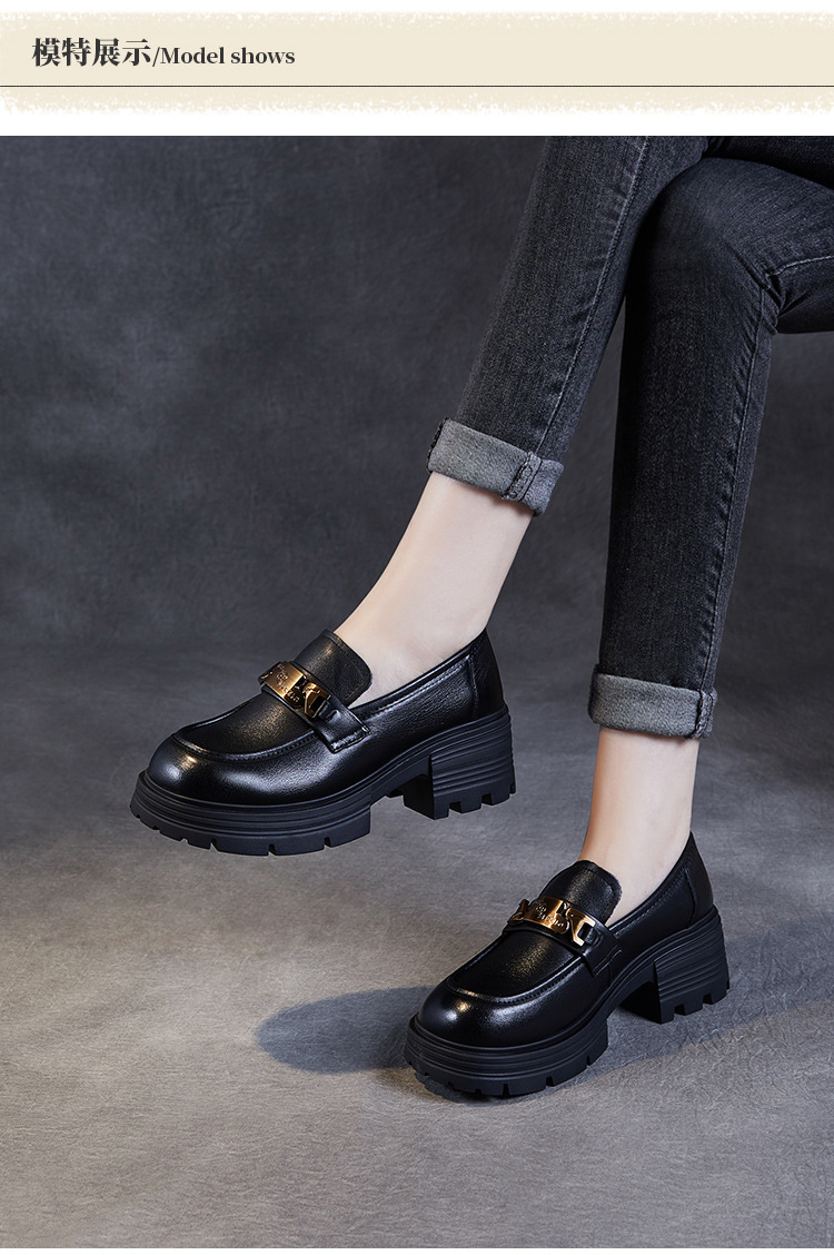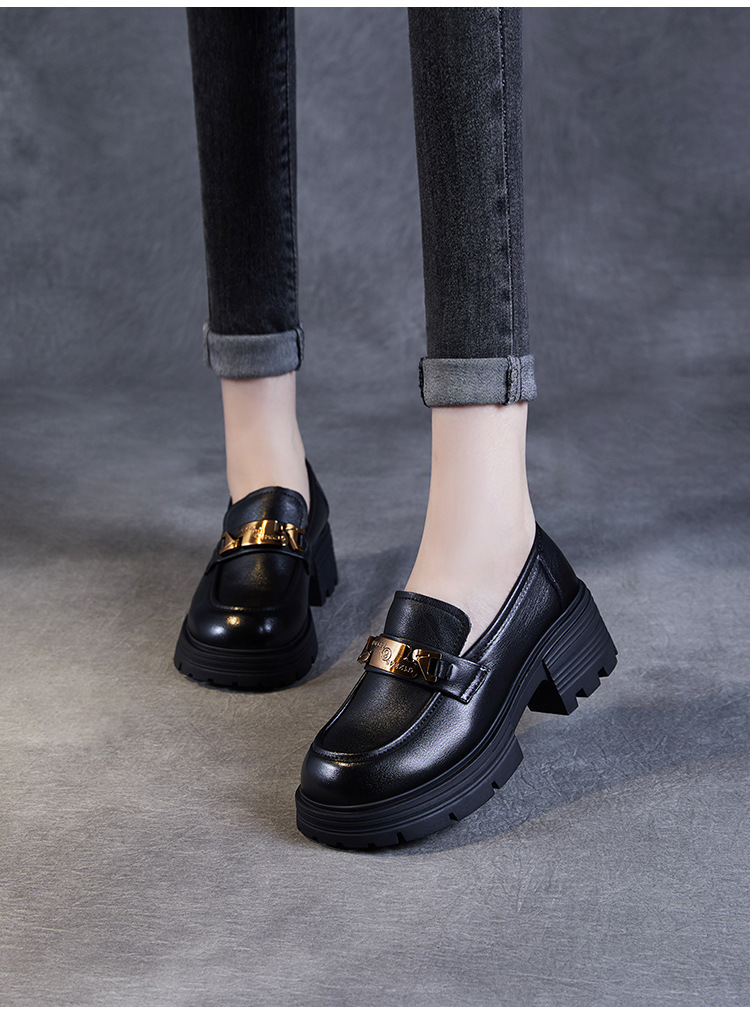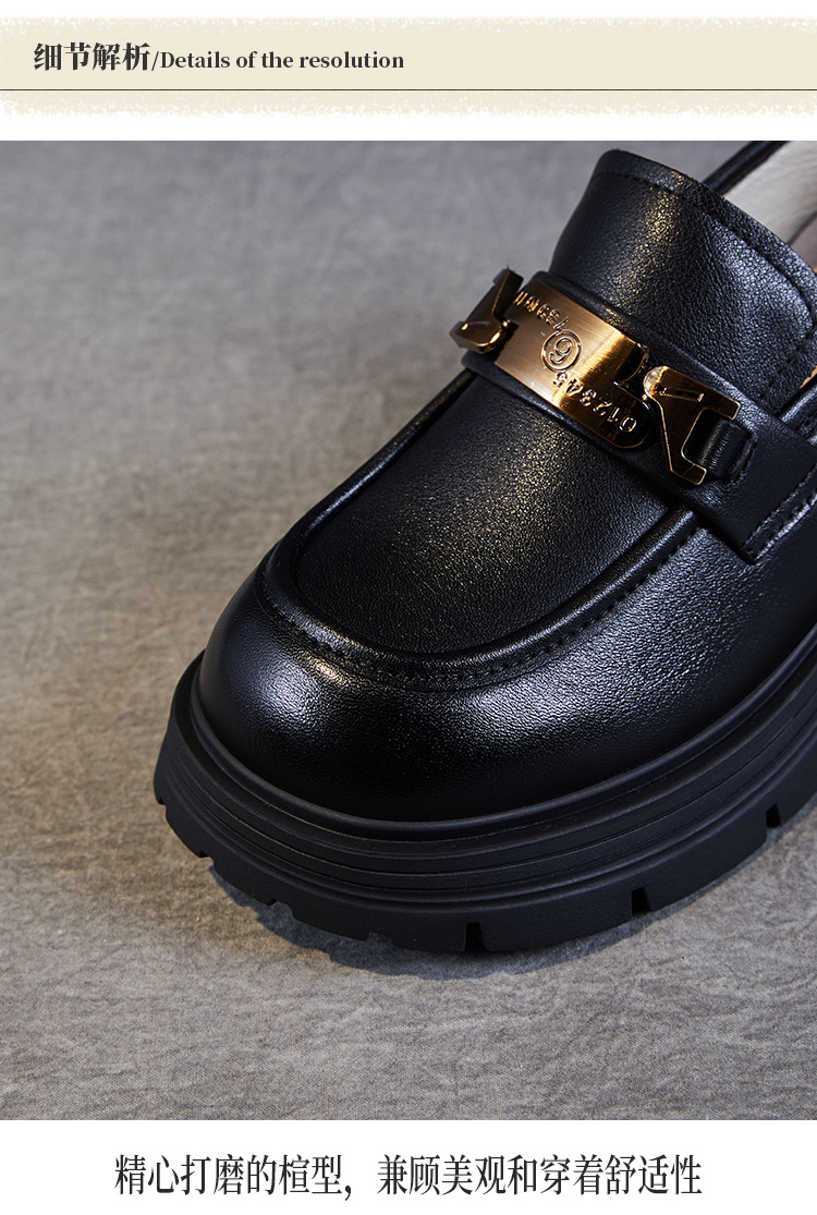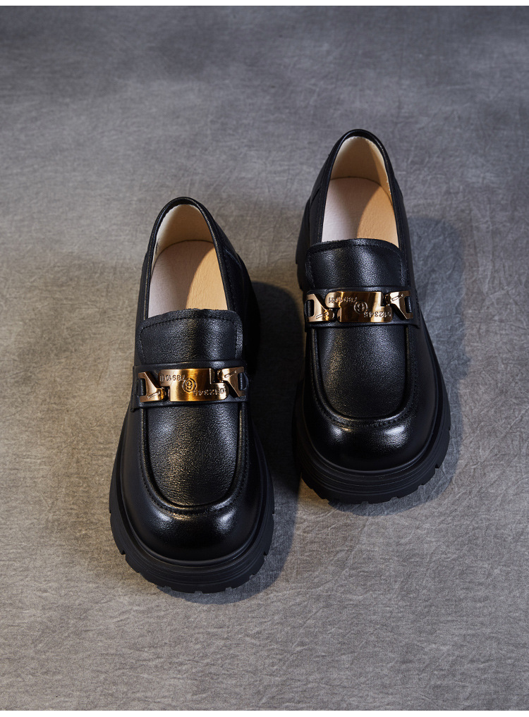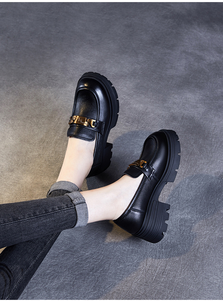 실제 Cowhide Loafers 2024 봄과 가을 여성 신발 금속 버클 플랫폼 신발 증가 영국 스타일 작은 가죽 신발스토어 가기