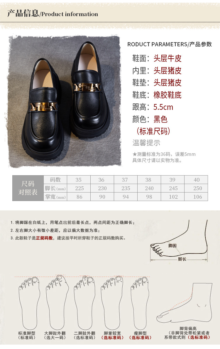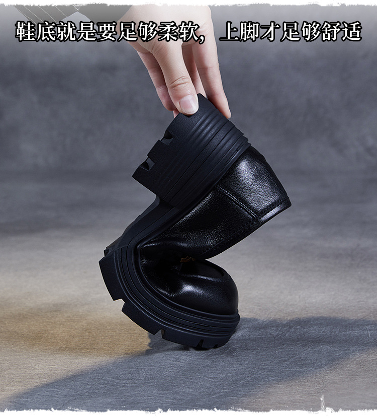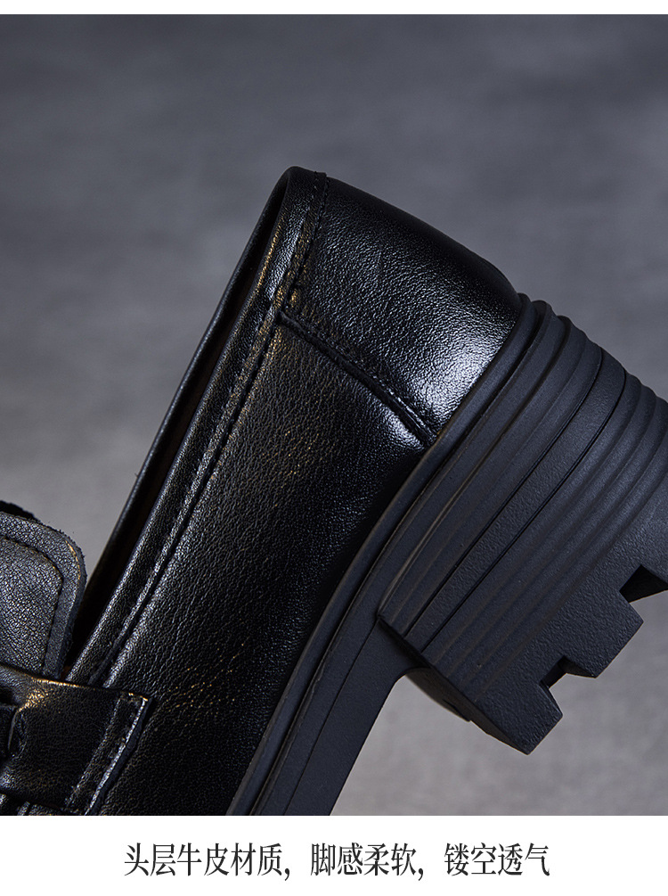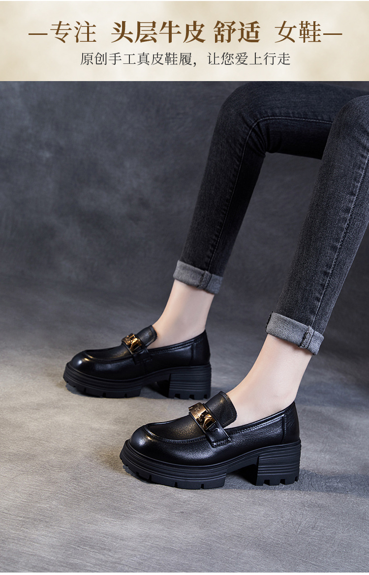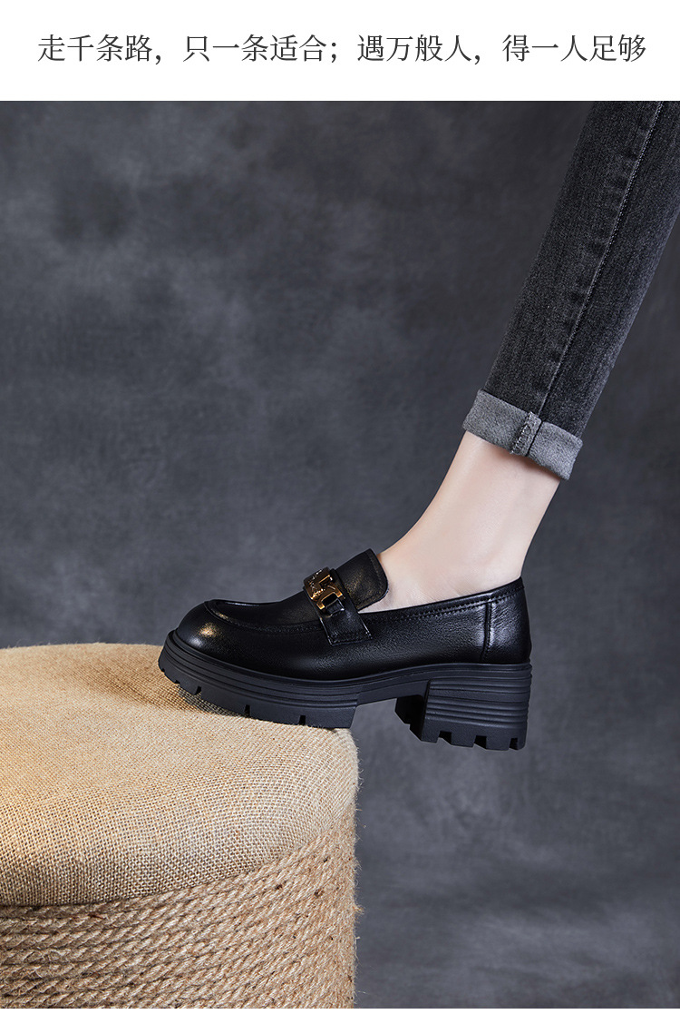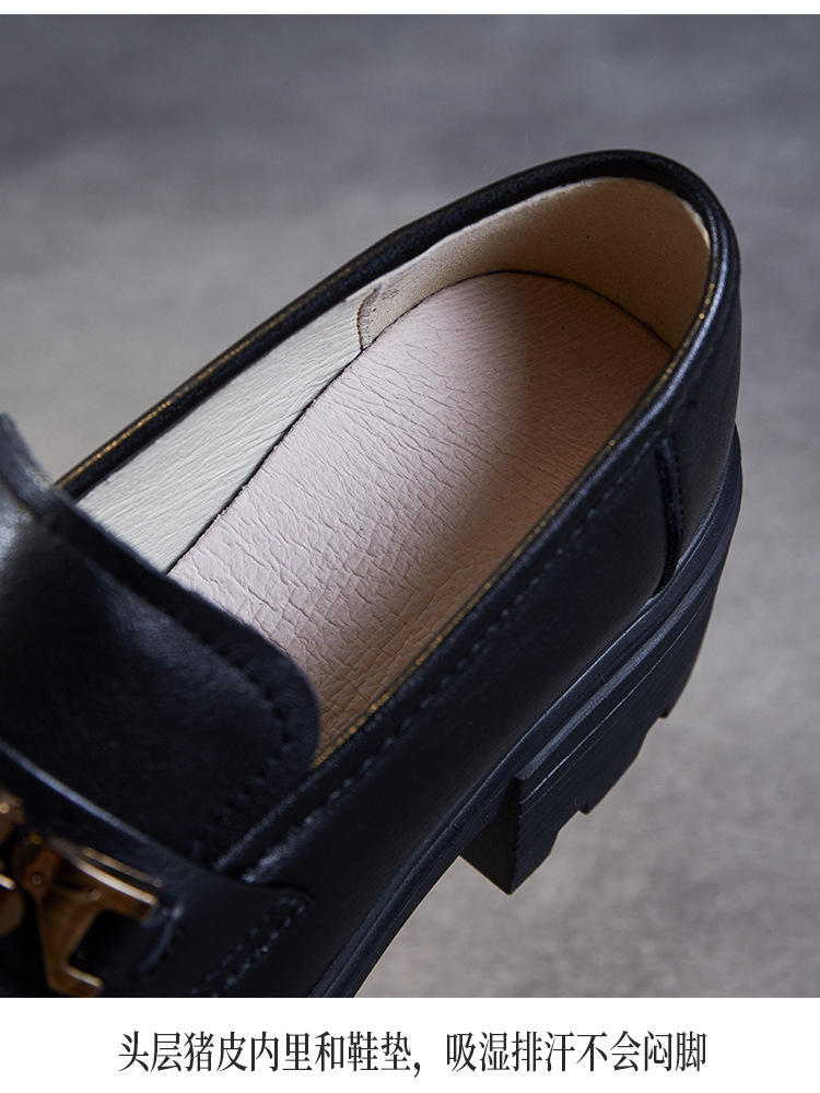 실제 Cowhide Loafers 2024 봄과 가을 여성 신발 금속 버클 플랫폼 신발 증가 영국 스타일 작은 가죽 신발스토어 가기