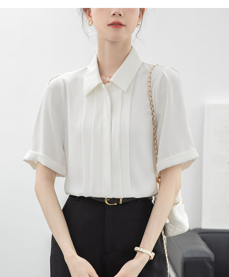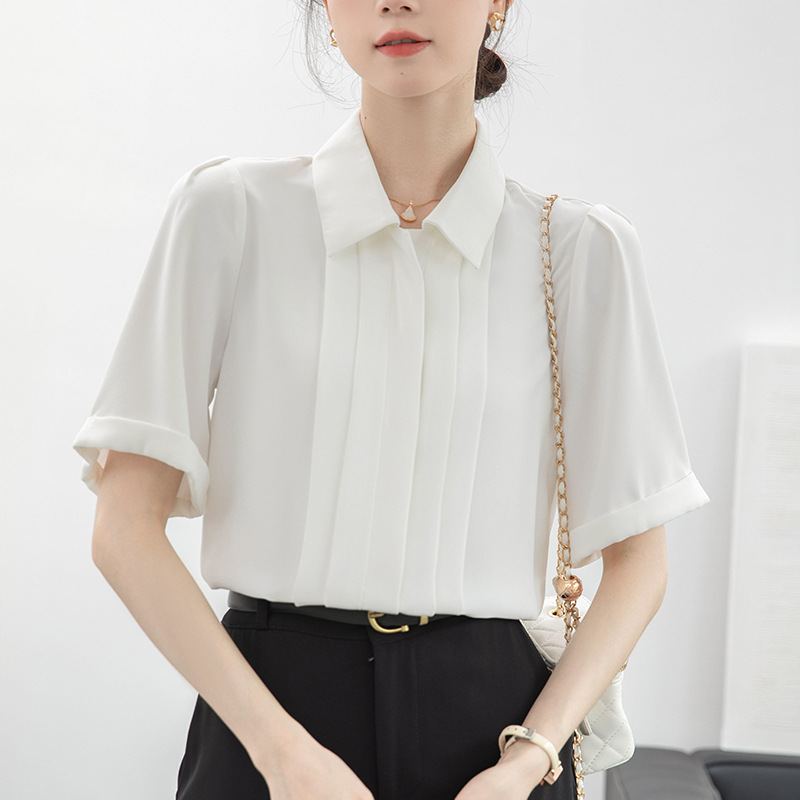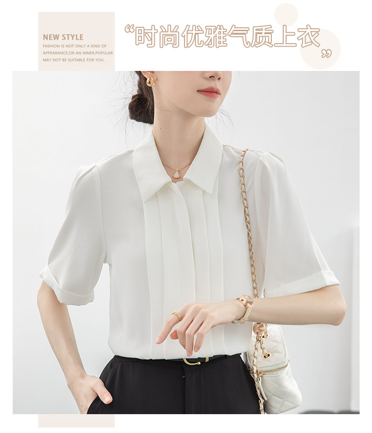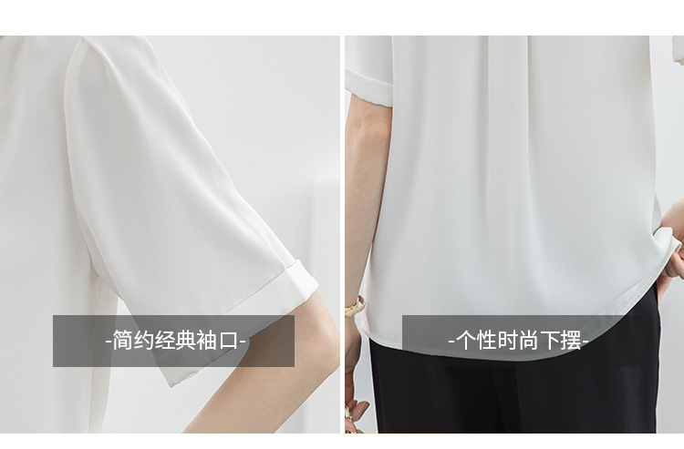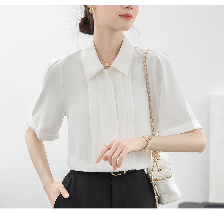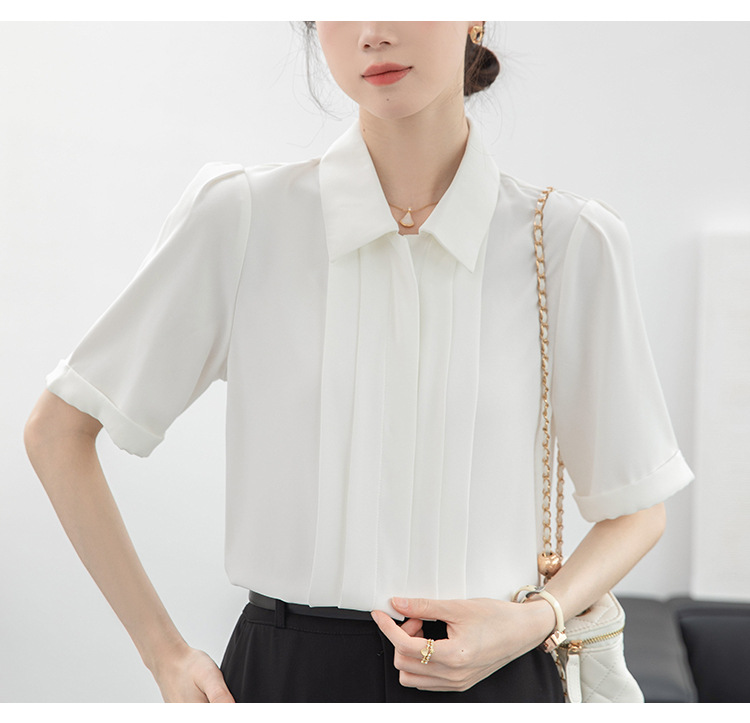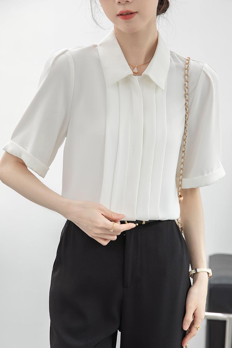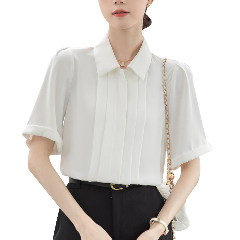 2024 리얼 샷 화이트 쉬폰 셔츠 여성 반팔 여름 새 공무원 인터뷰 기질 원피스 전문 셔츠