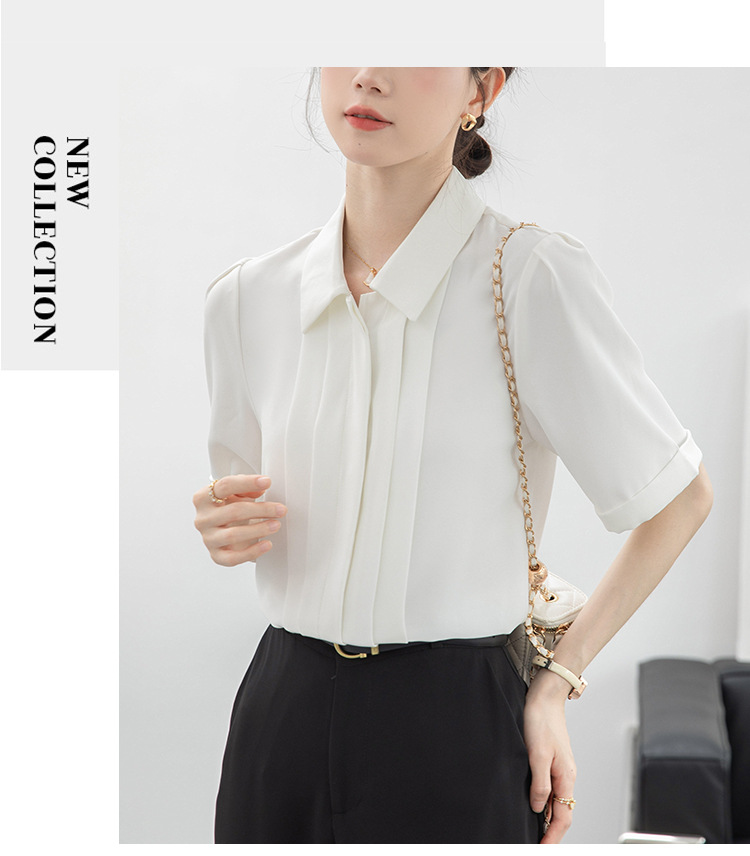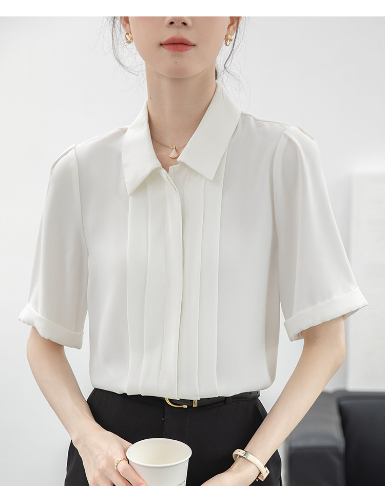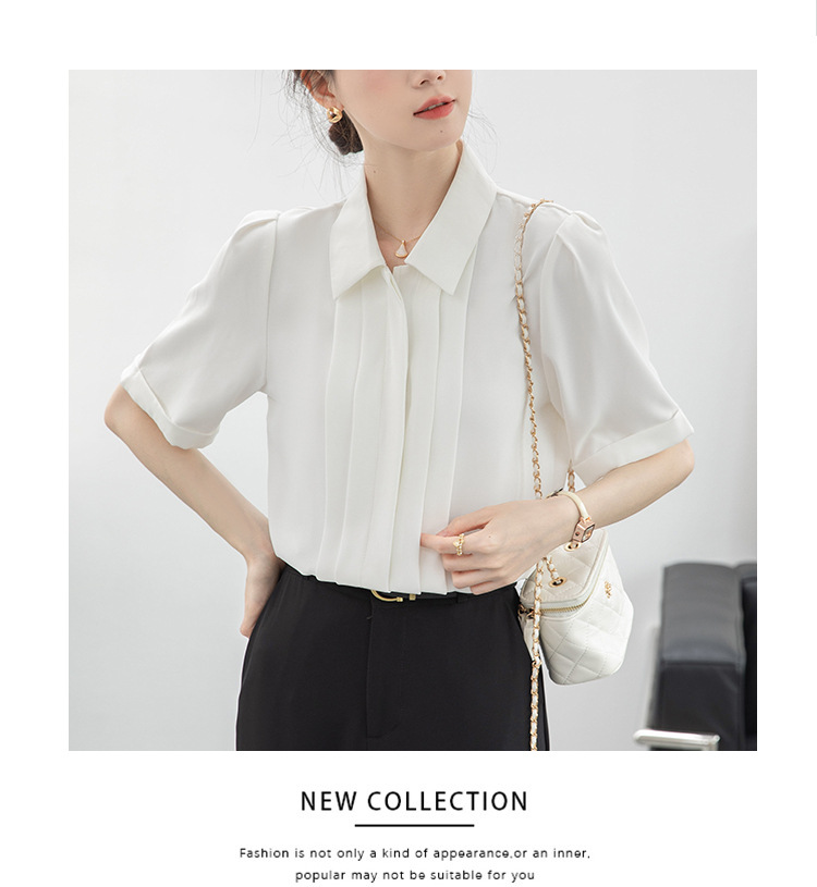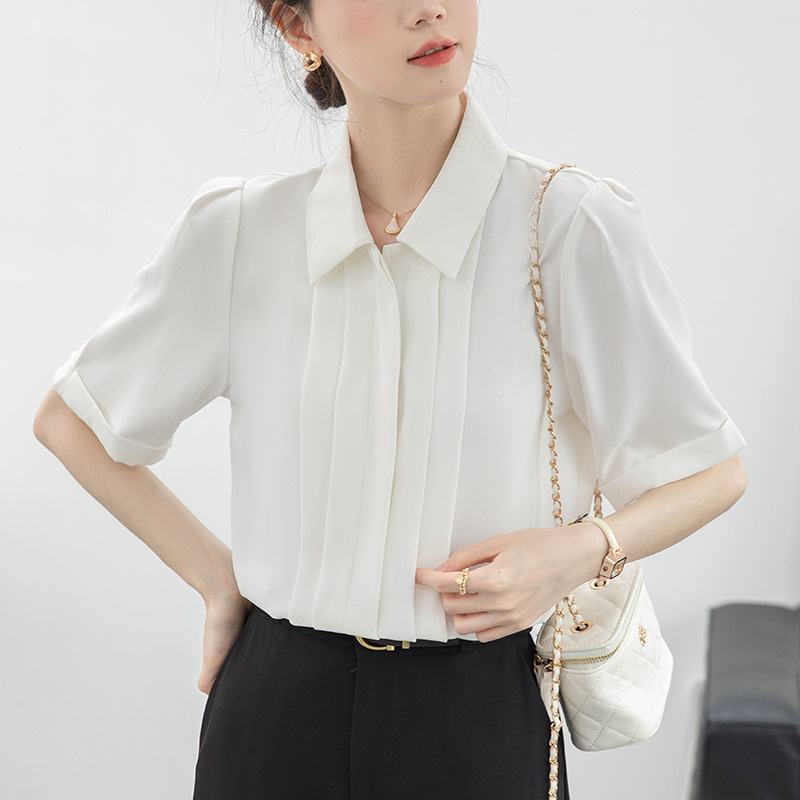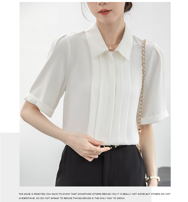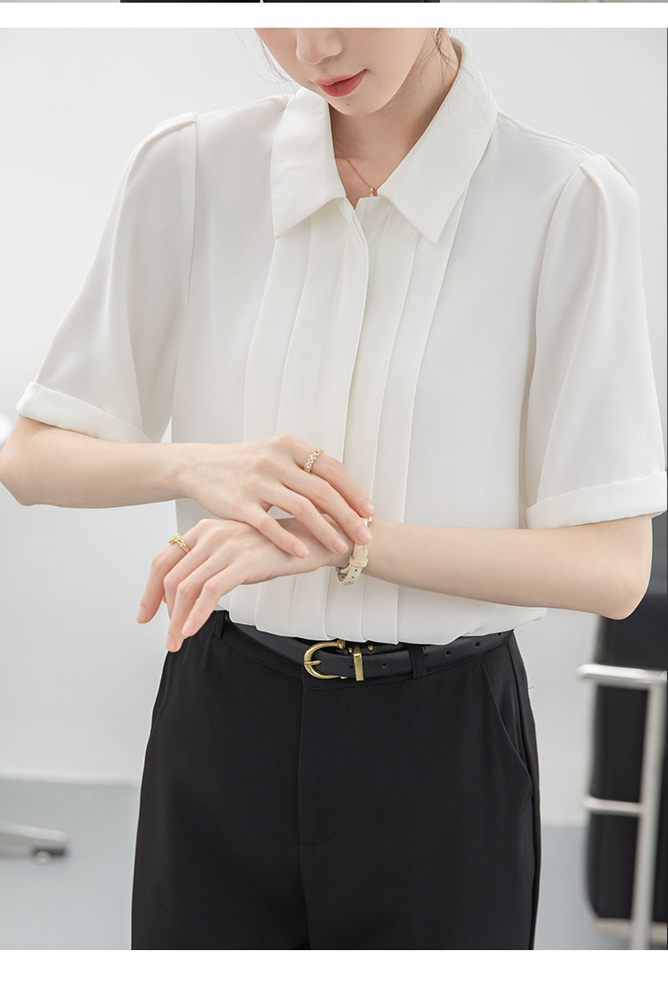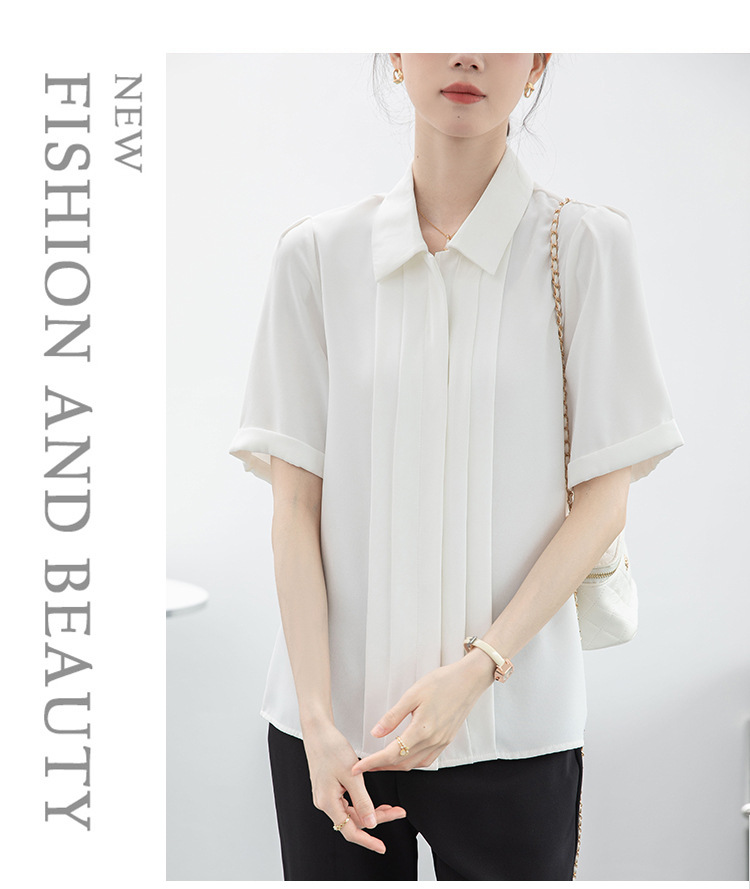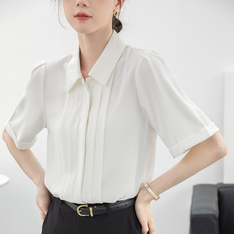 2024 리얼 샷 화이트 쉬폰 셔츠 여성 반팔 여름 새 공무원 인터뷰 기질 원피스 전문 셔츠