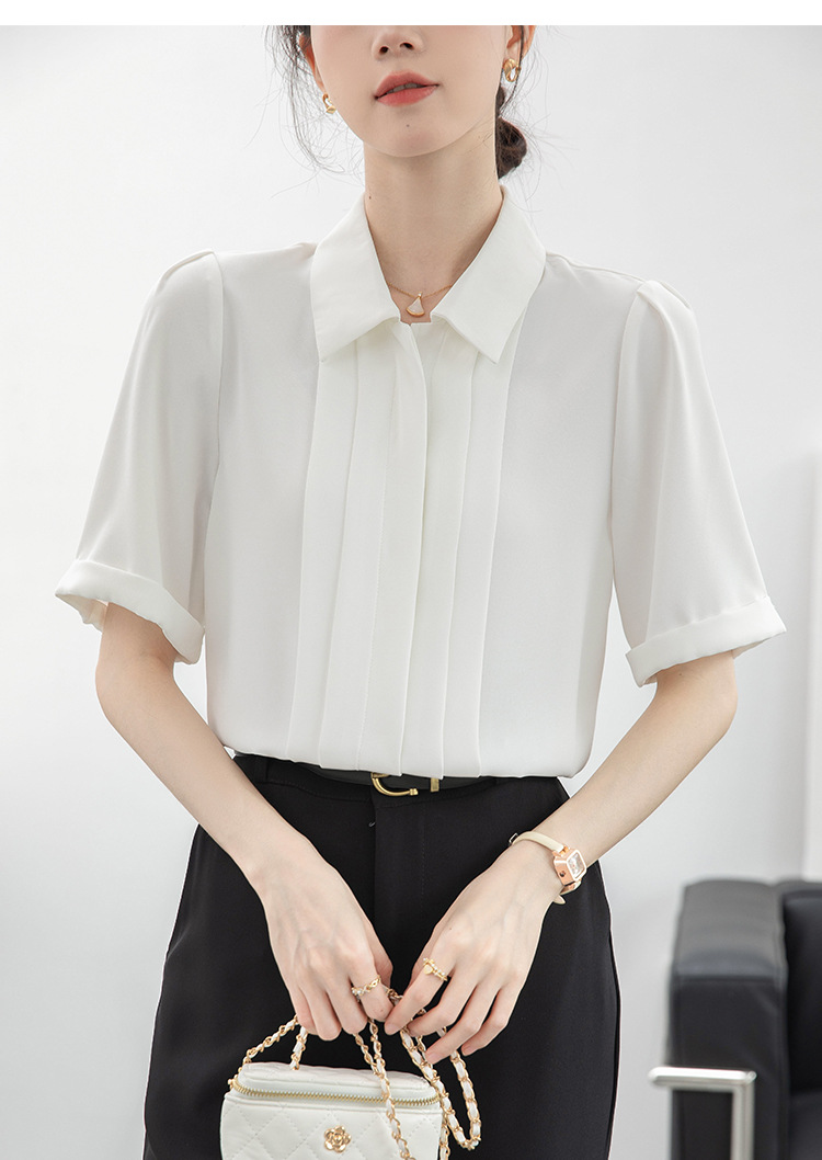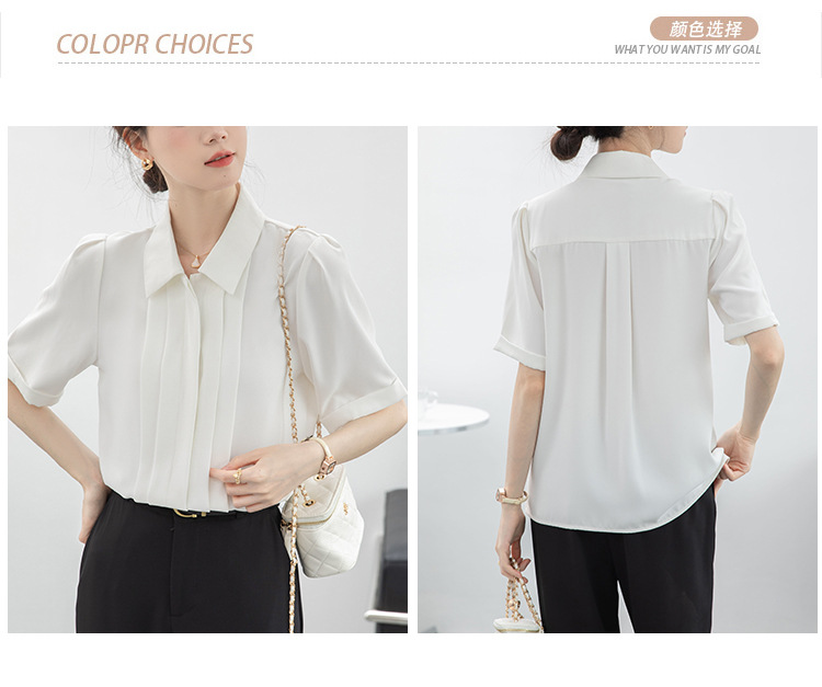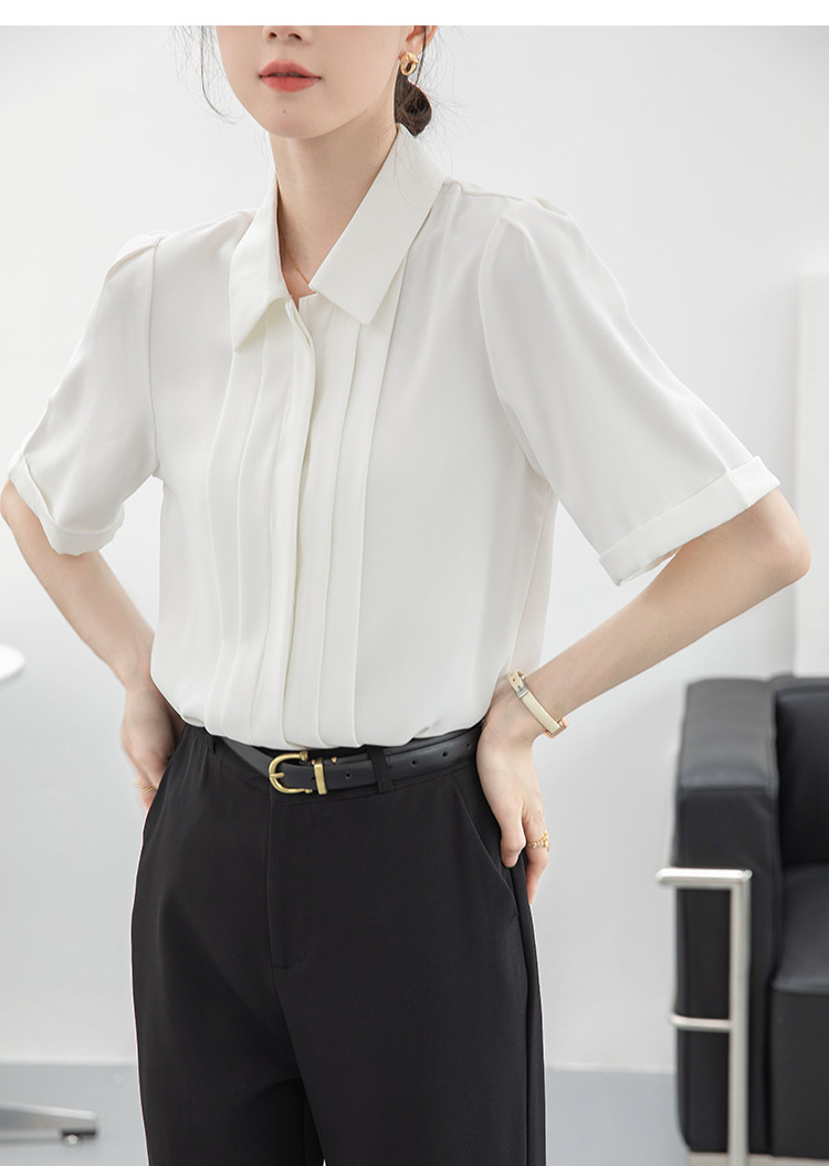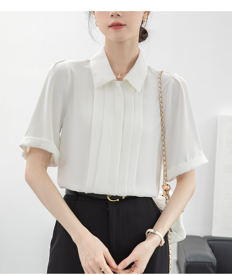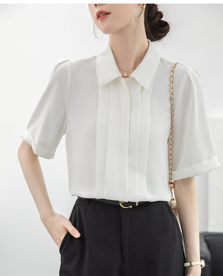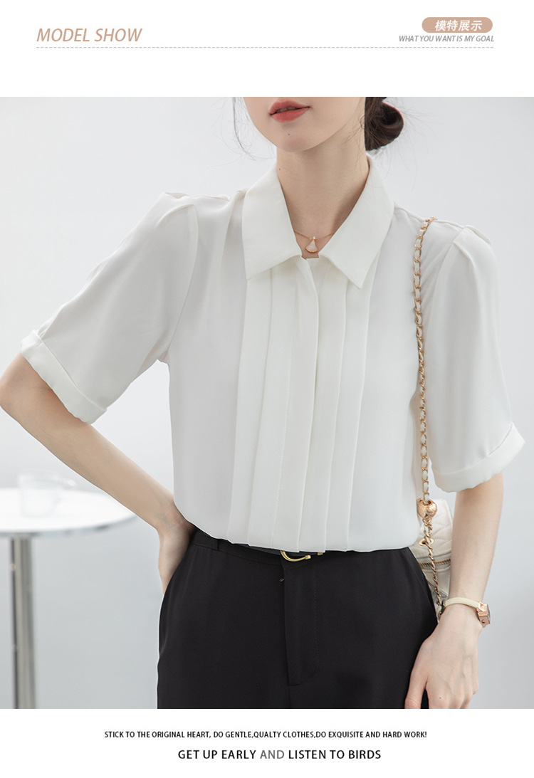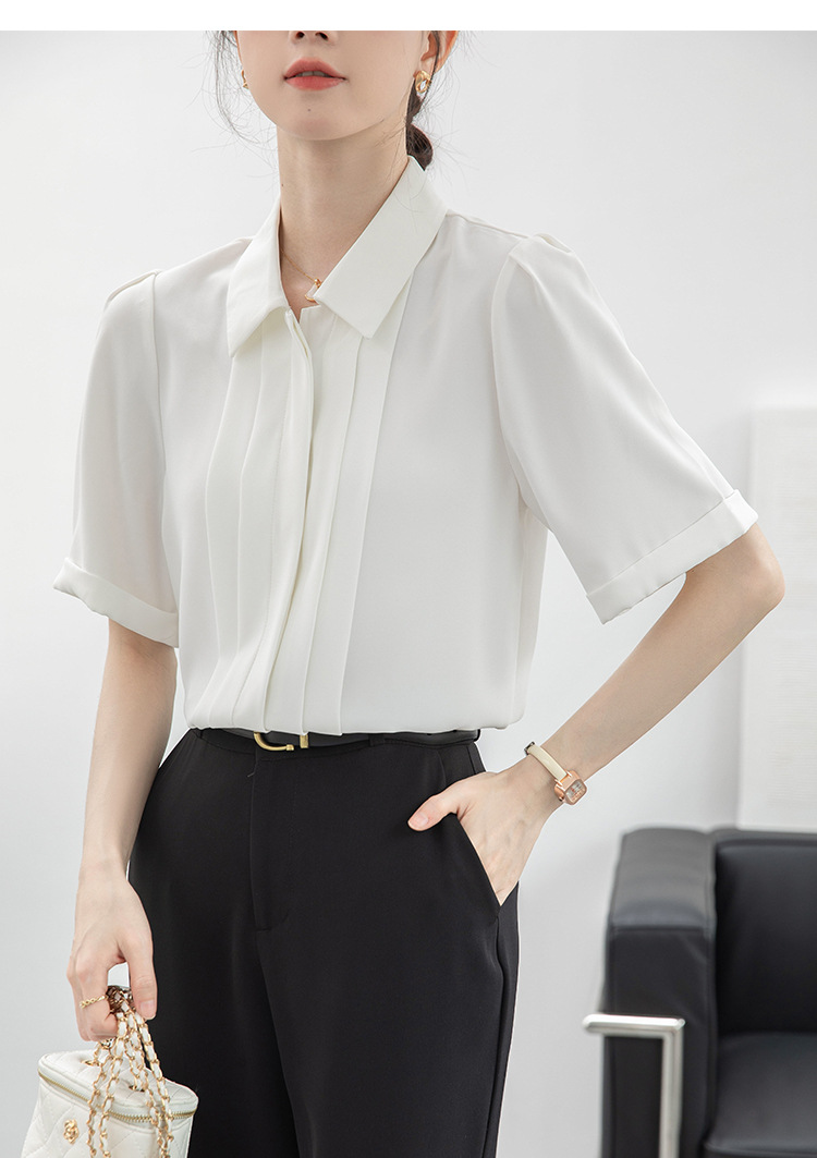2024 리얼 샷 화이트 쉬폰 셔츠 여성 반팔 여름 새 공무원 인터뷰 기질 원피스 전문 셔츠
