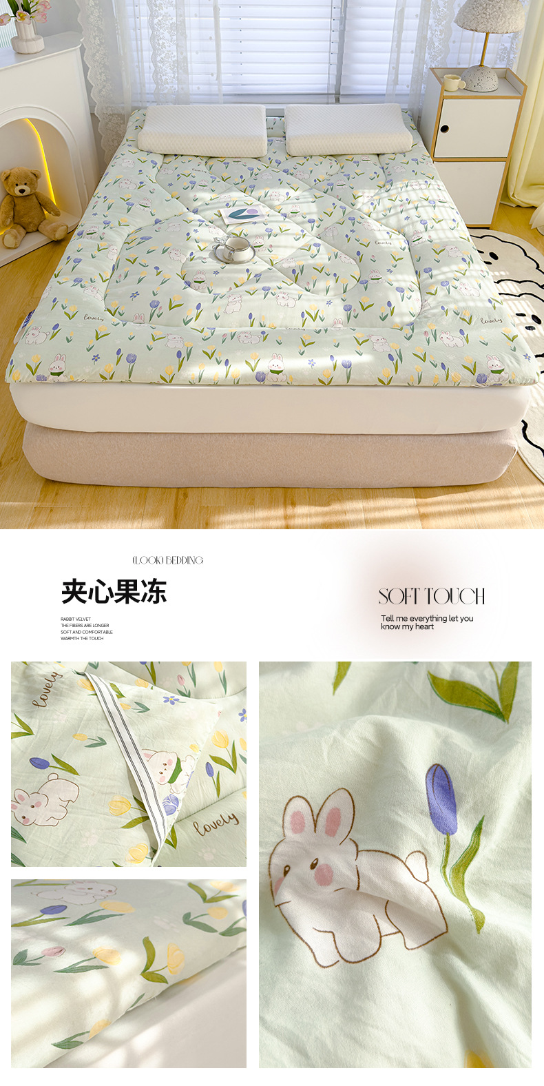 • 꽃 토끼 [A 급 물을 씻은 목화 침대 매트]]