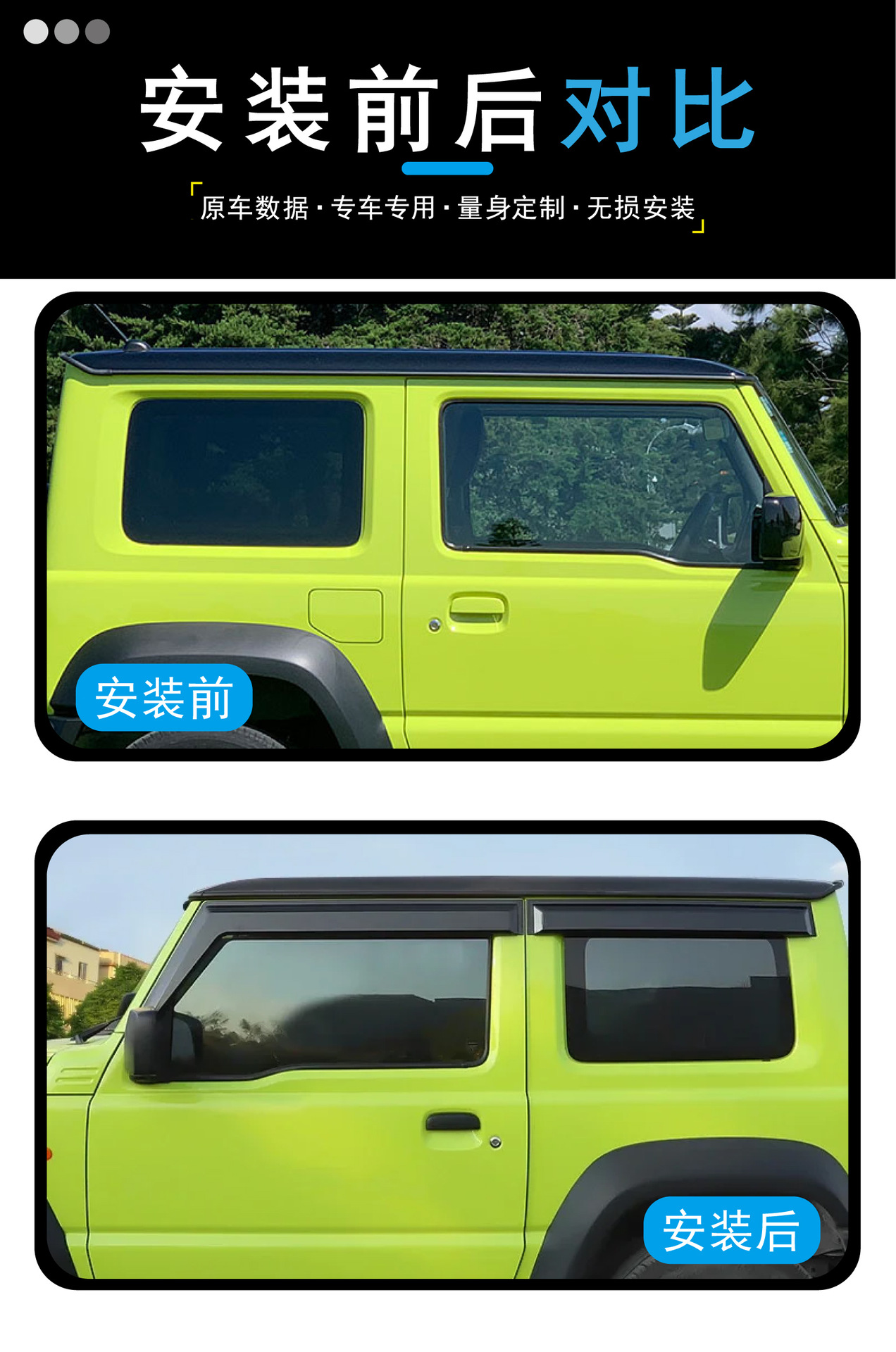 2007-2023 의 국경 간 응용 프로그램 스즈키 Jimny 자동차 창 비가 두꺼워 진 Jimny 자동차 비 방패 확대스토어 가기