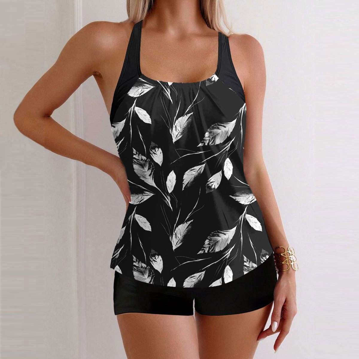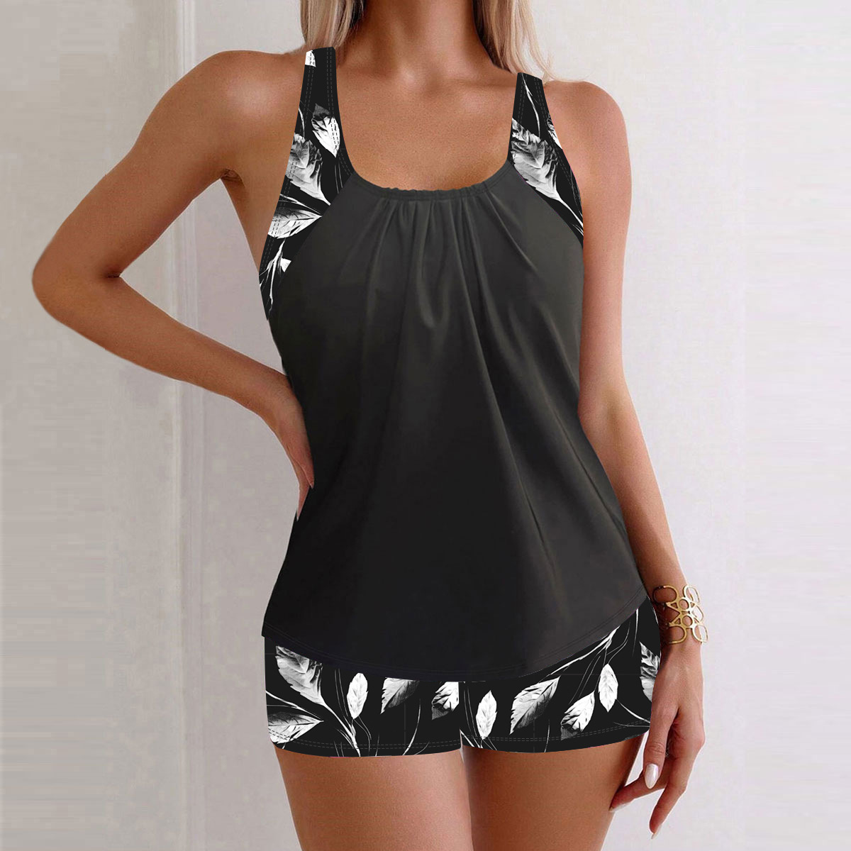 유럽과 미국의 새로운 스타일로 분리된 여성용 수영복, 슬림핏 민소매 프린트 팬티, 해외 무역 세트 Tankin스토어 가기