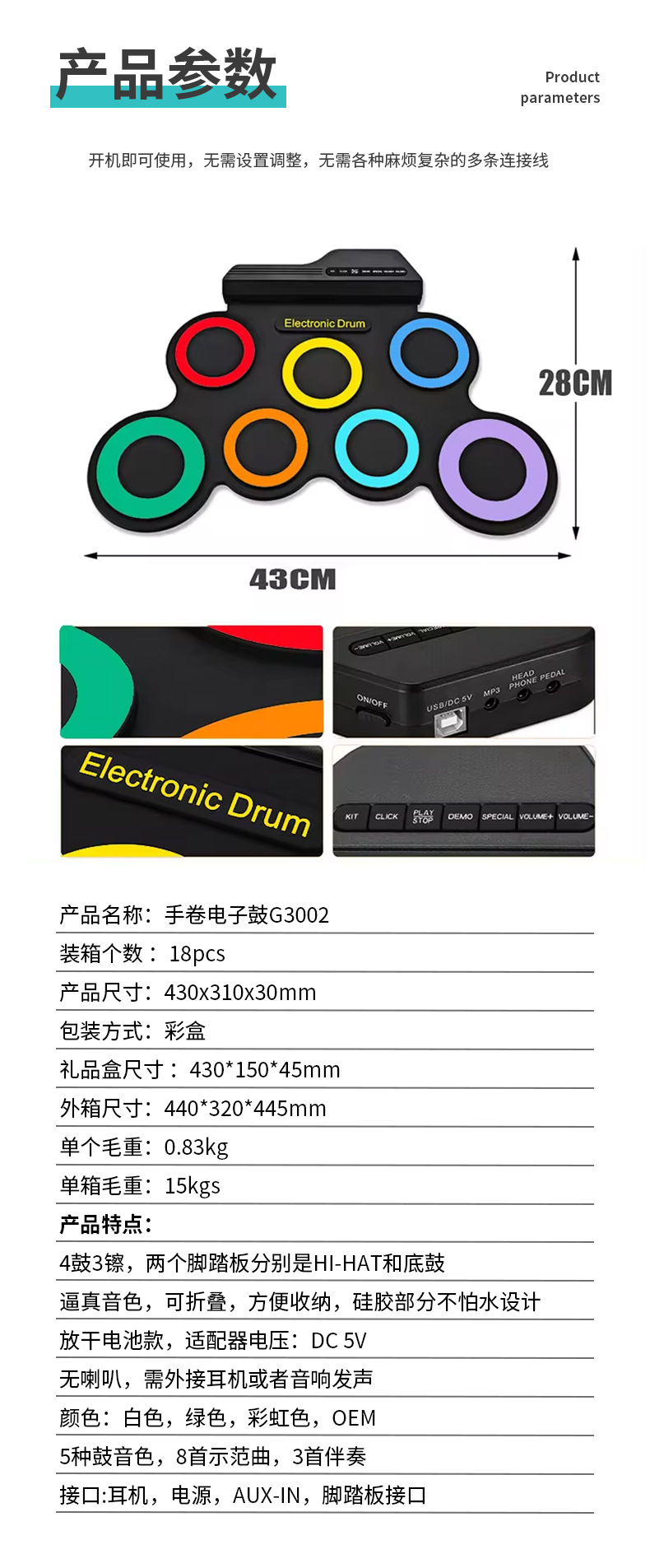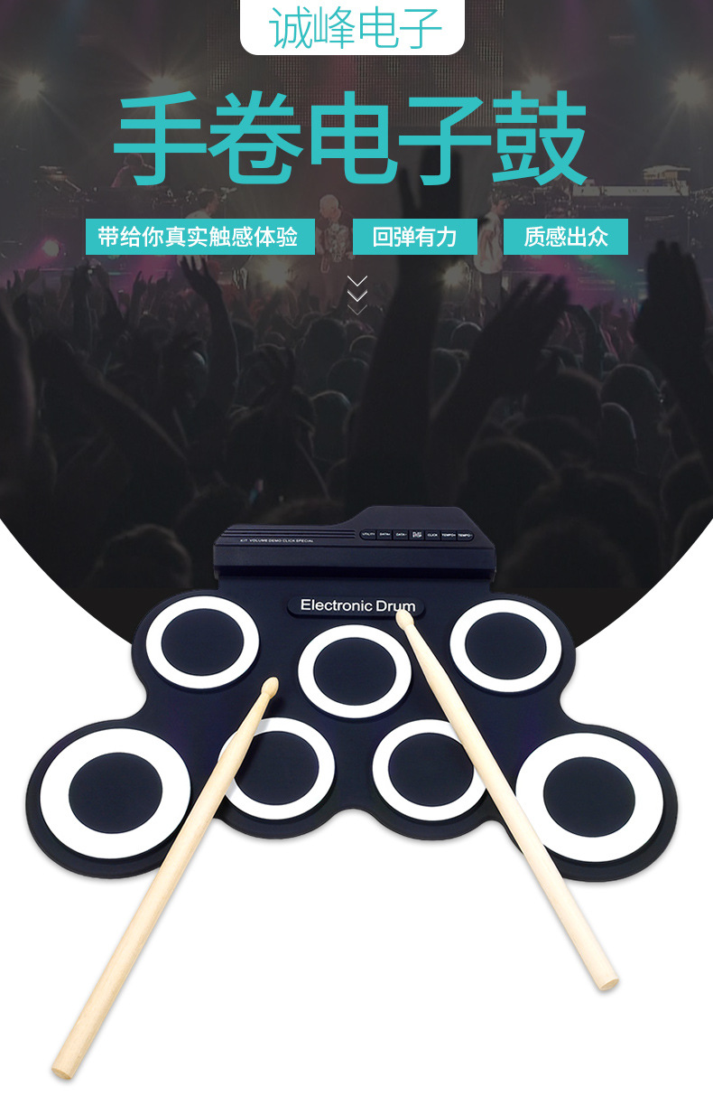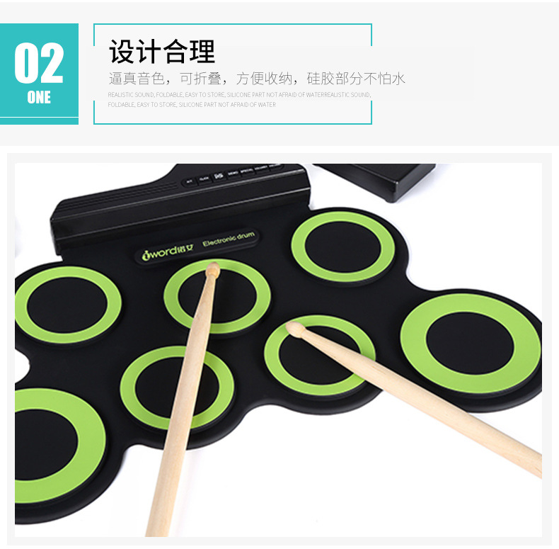 국경을 넘는 인기 상품, 어린이 교육용 게임 드럼, 성인용 USB 접이식 전자 드럼, 다양한 스타일의 악기스토어 가기