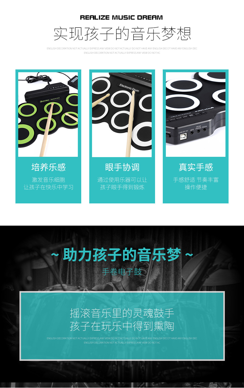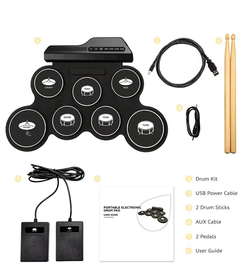 국경을 넘는 인기 상품, 어린이 교육용 게임 드럼, 성인용 USB 접이식 전자 드럼, 다양한 스타일의 악기