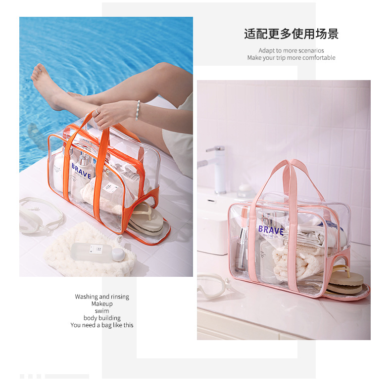 Runhui 여행 화장품 가방 크리스탈 건식 및 습식 분리 비치 가방 피트니스 수영 방수 세면 용품 가방 투명 화장품 가방스토어 가기