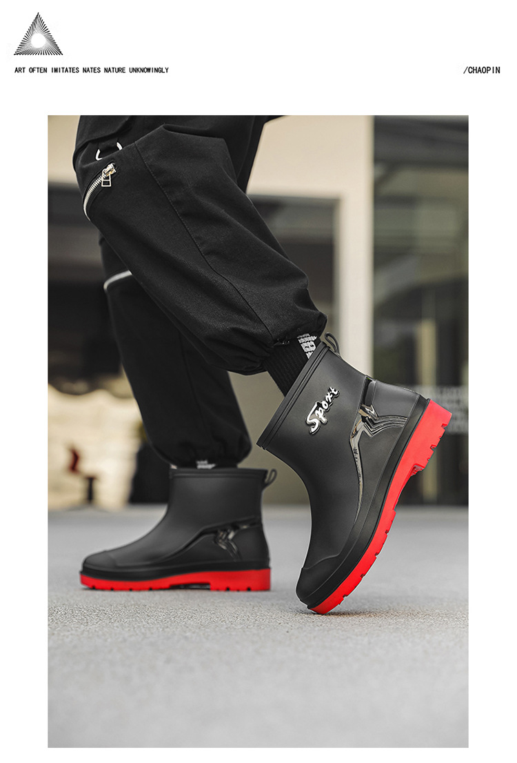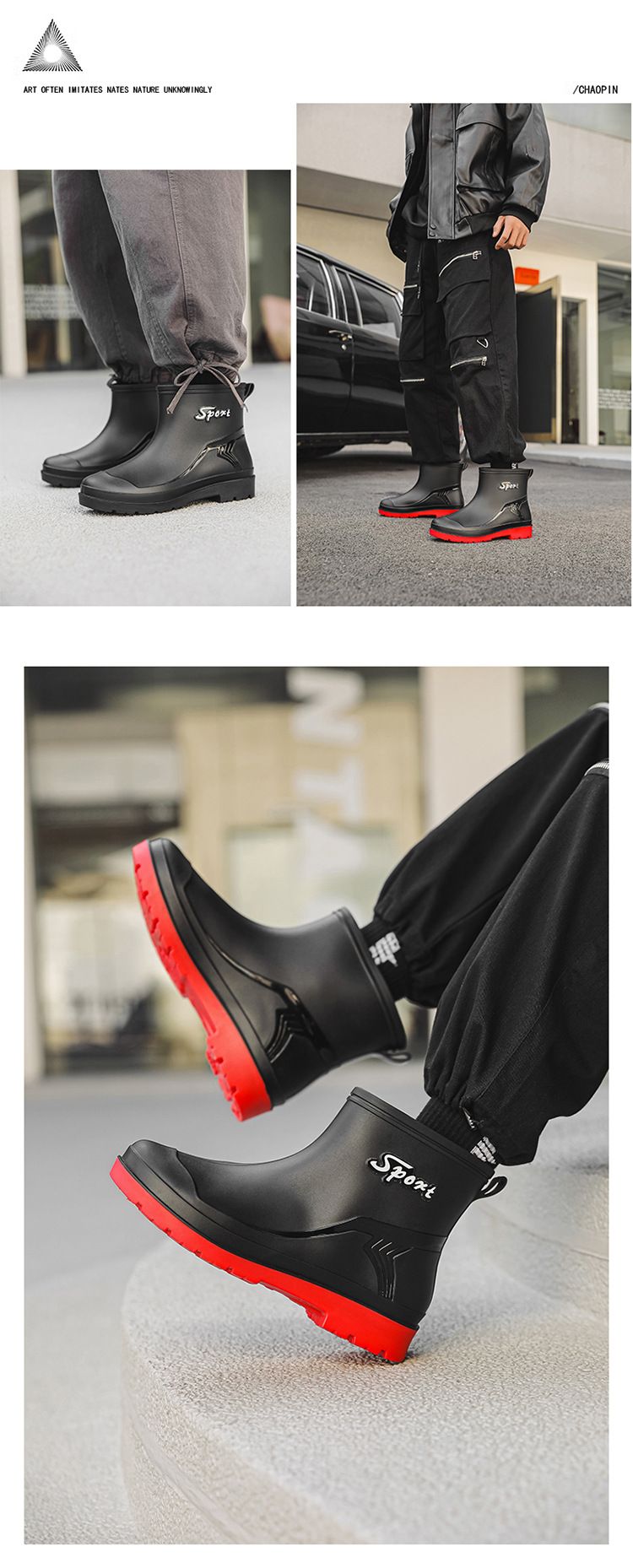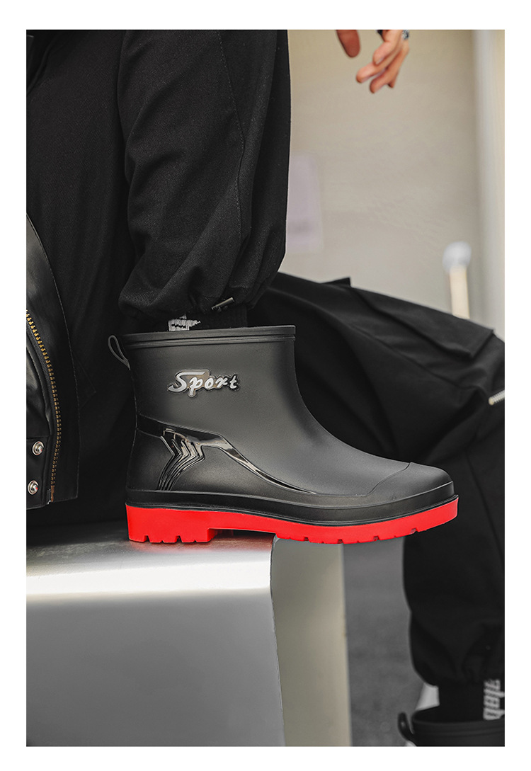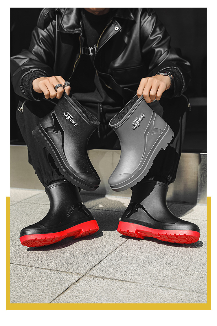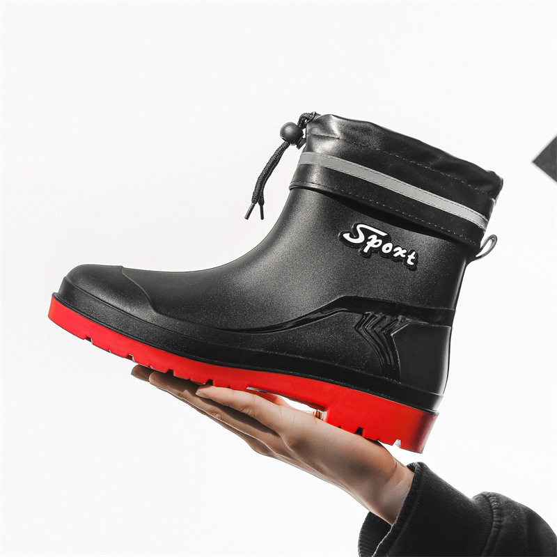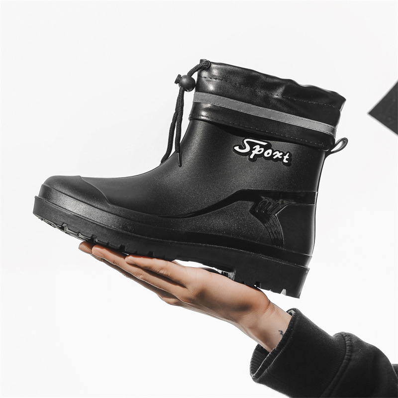 국경 간 장화 남성용 짧은 장화 미끄럼 방지 주방 작업 고무 신발 기모 세차 낚시 노동 보호 수화