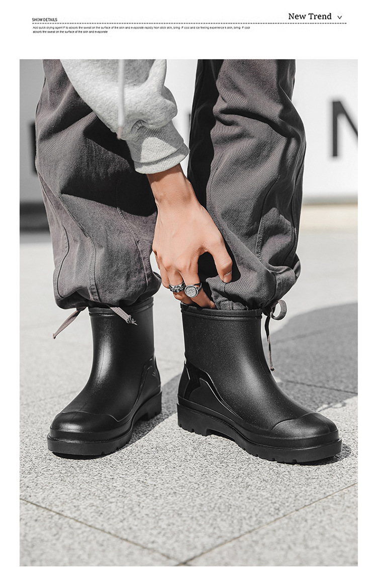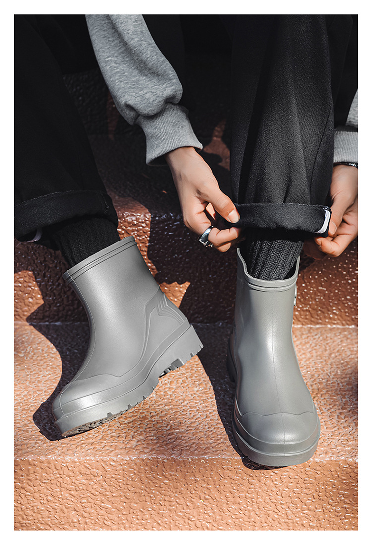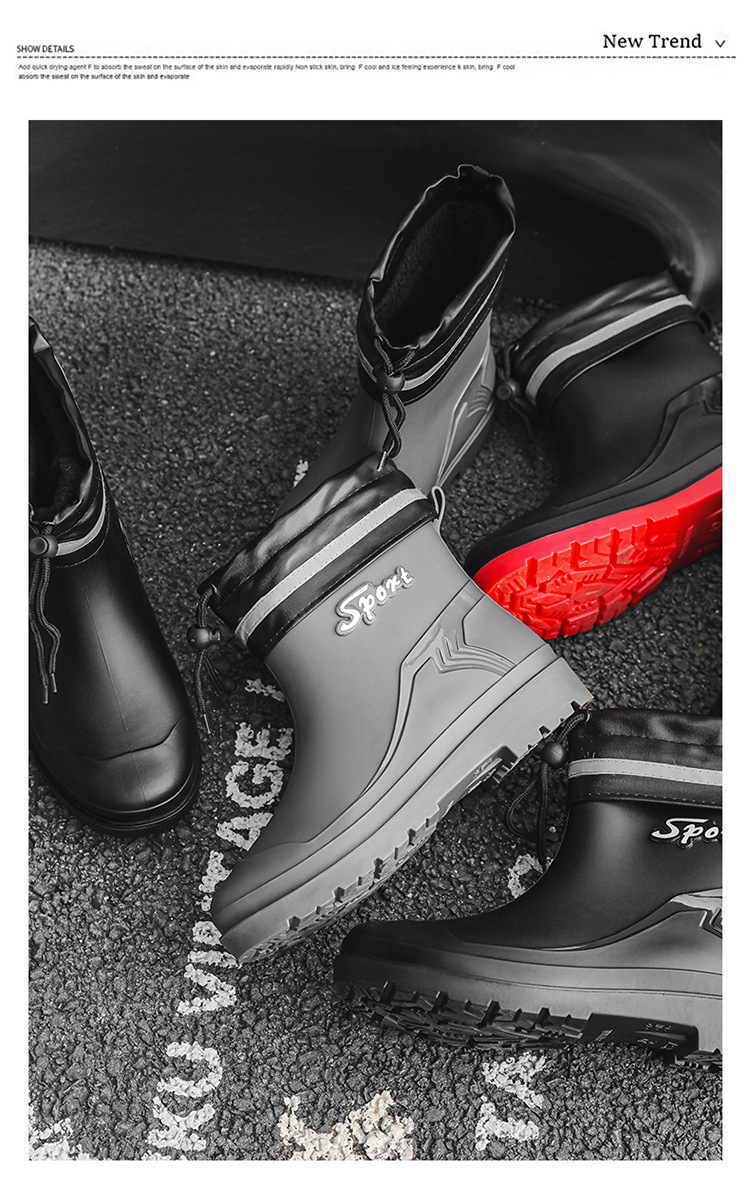 국경 간 장화 남성용 짧은 장화 미끄럼 방지 주방 작업 고무 신발 기모 세차 낚시 노동 보호 수화스토어 가기