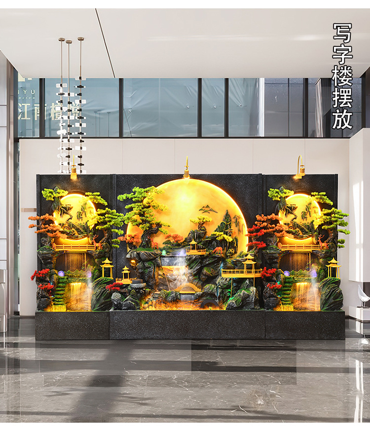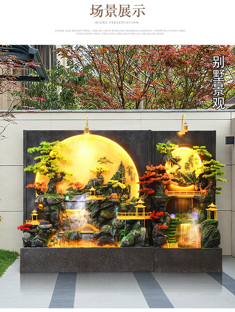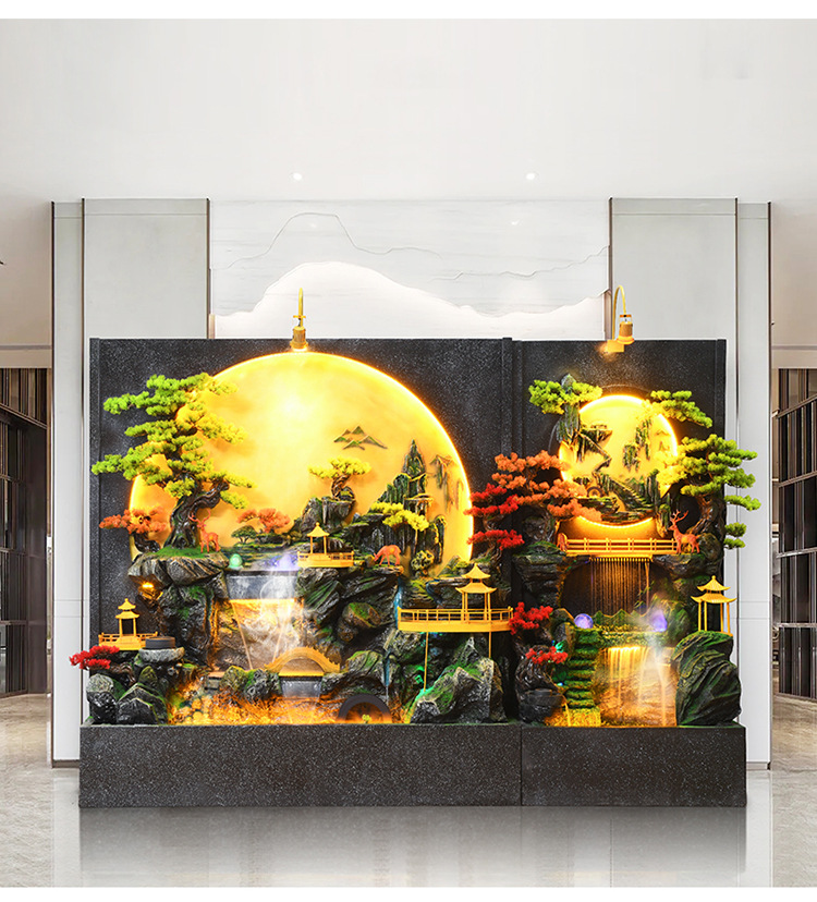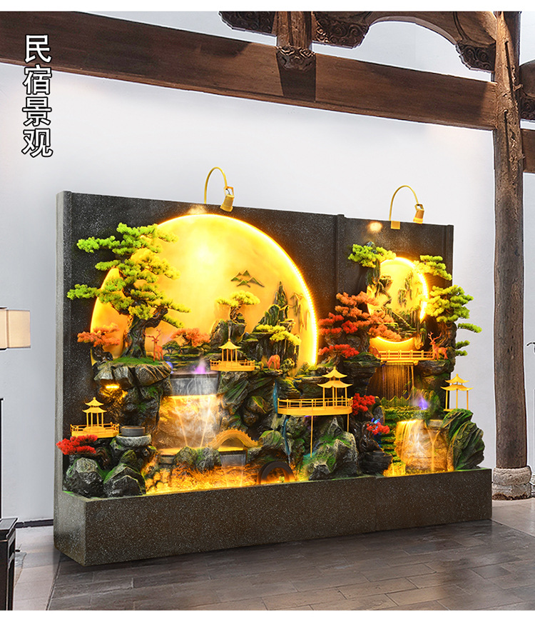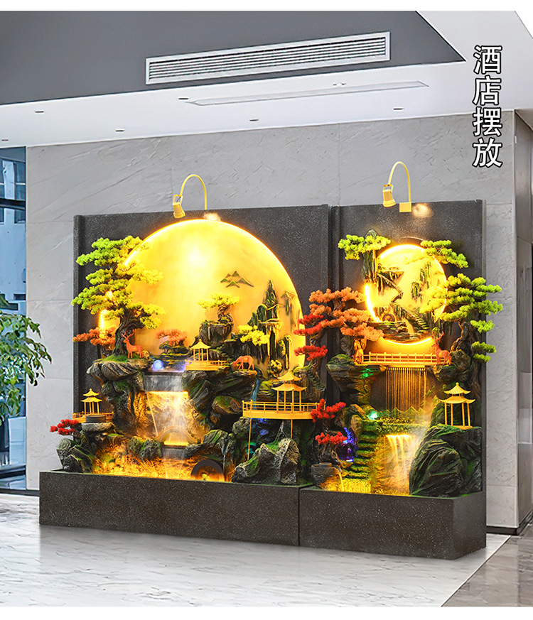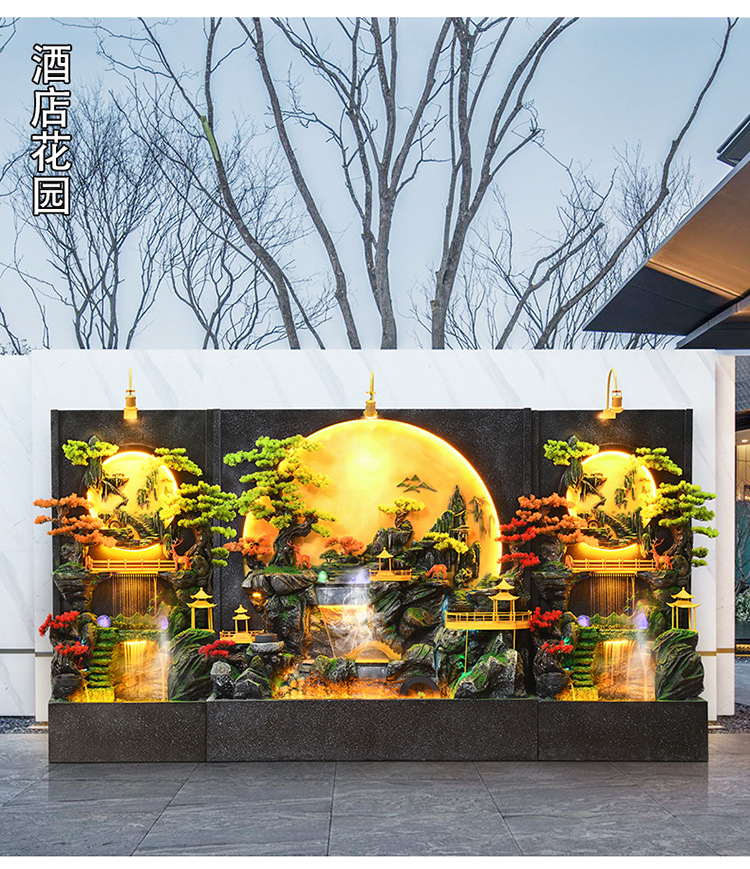 물 커튼 벽 흐르는 물 스크린 회사 호텔 빌라 배경 실내 및 야외 안뜰 정원 바위 물고기 연못 분수 풍경스토어 가기