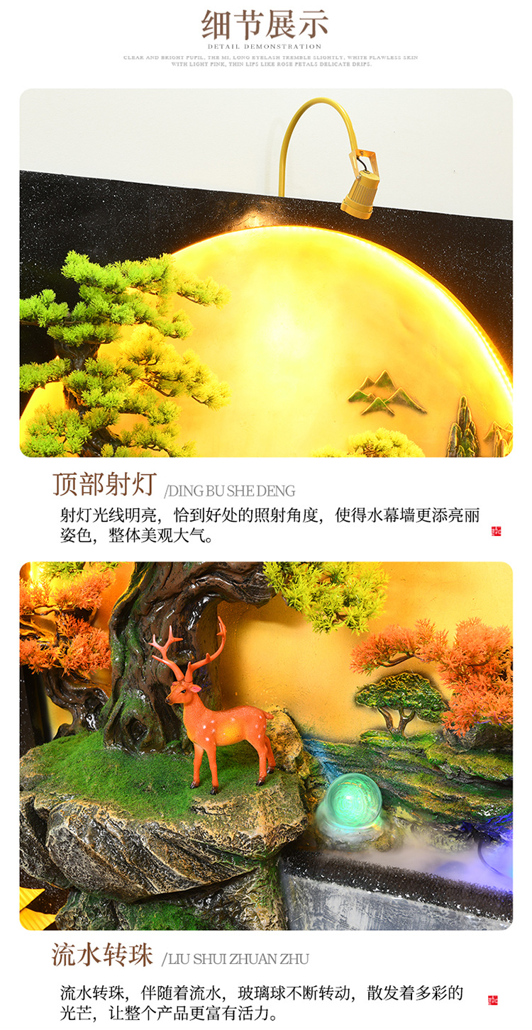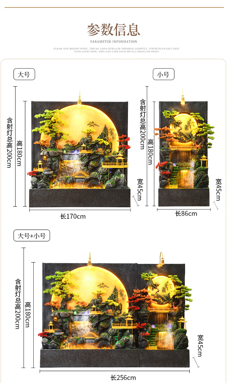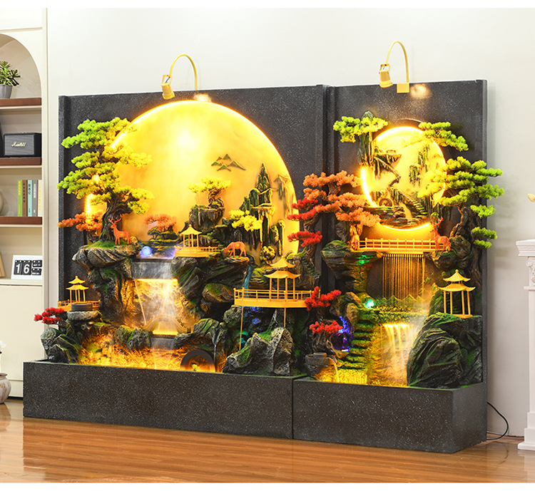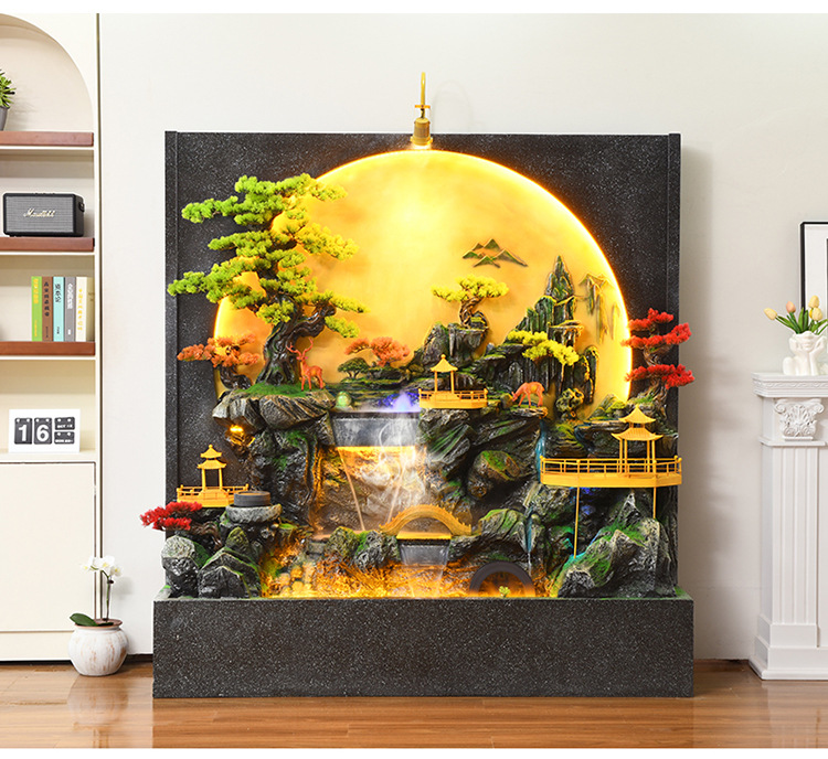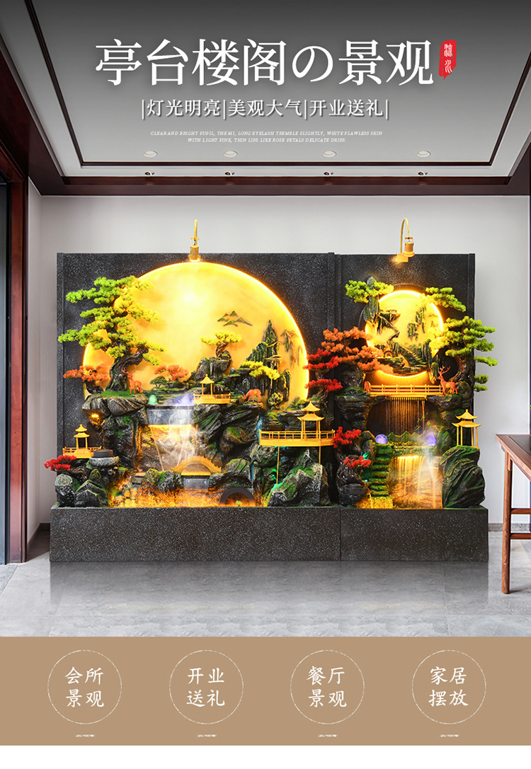 물 커튼 벽 흐르는 물 스크린 회사 호텔 빌라 배경 실내 및 야외 안뜰 정원 바위 물고기 연못 분수 풍경스토어 가기