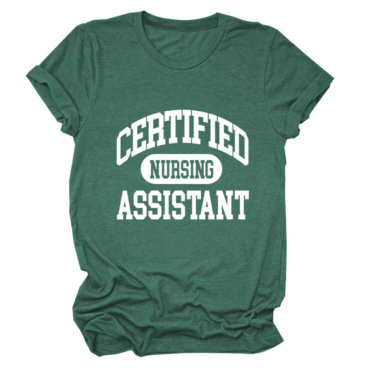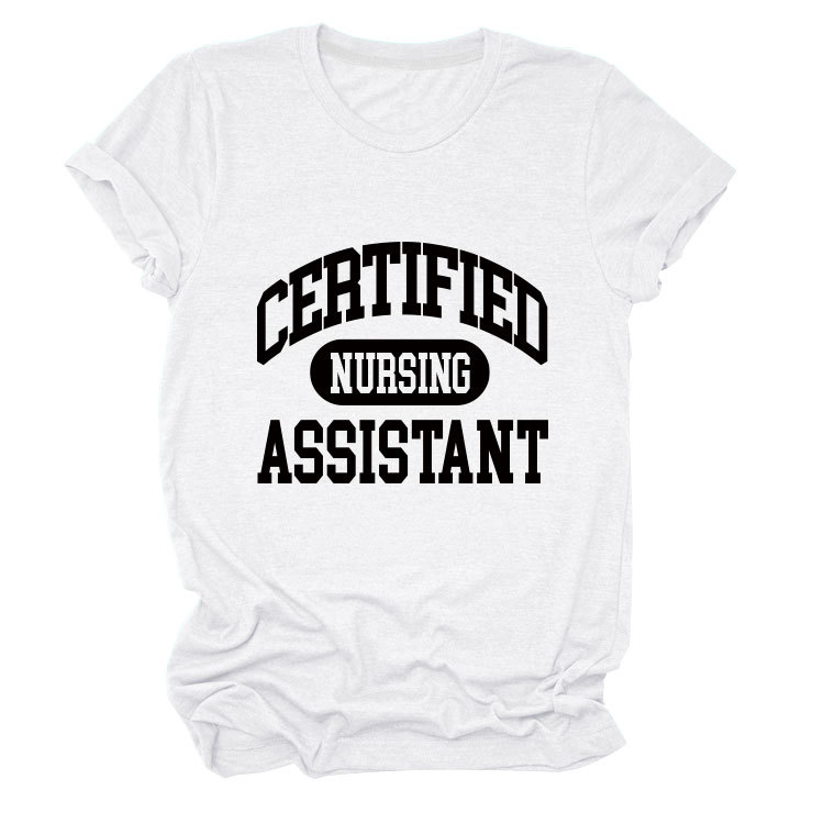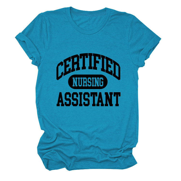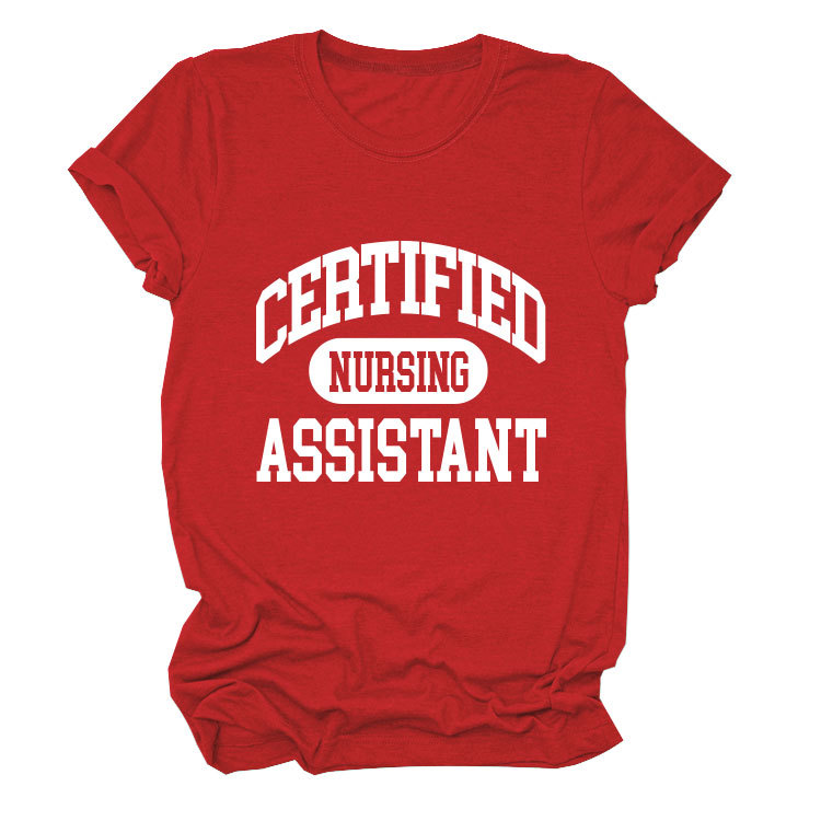 아마존 국경 대외 무역 인증 간호 새로운 짧은 소매 여성 패션 티셔츠 재고 플러스 사이즈 도매스토어 가기