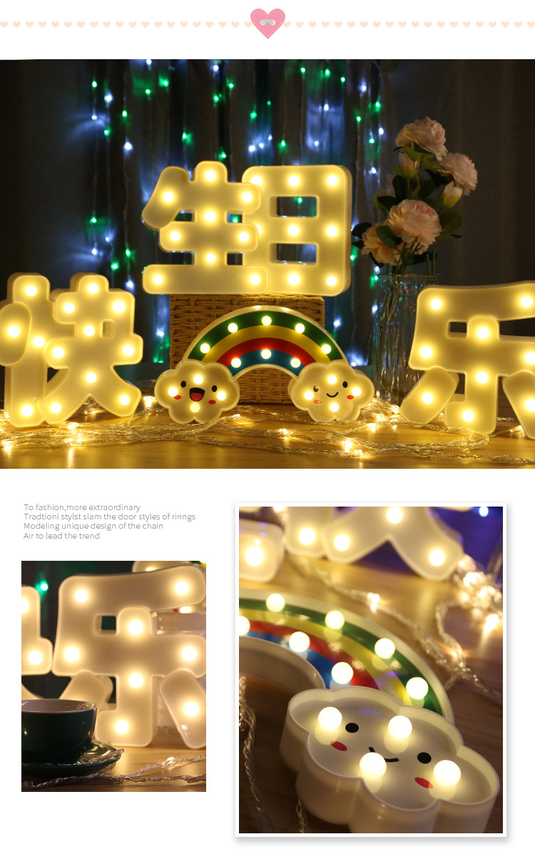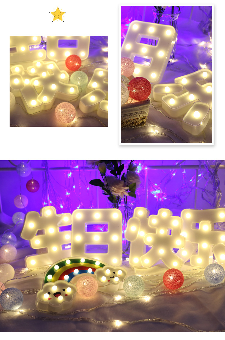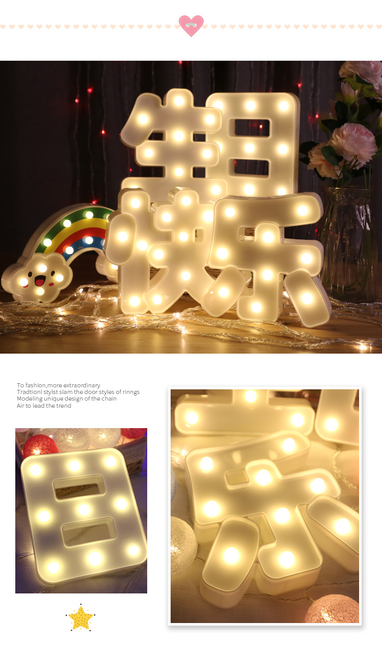 국경 간 혁신적인 led 중국 편지 조명 생일 축하 휴일 장식 파티 웨딩 장식 제안 소품 조명스토어 가기
