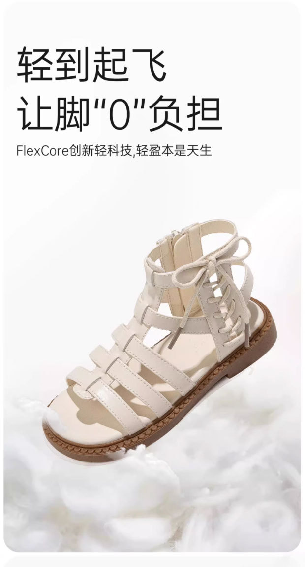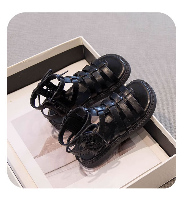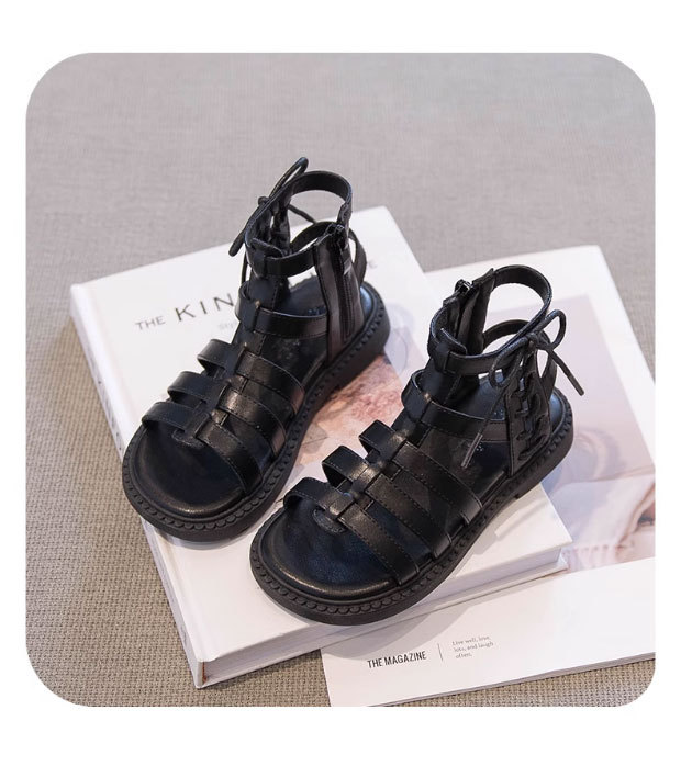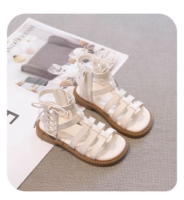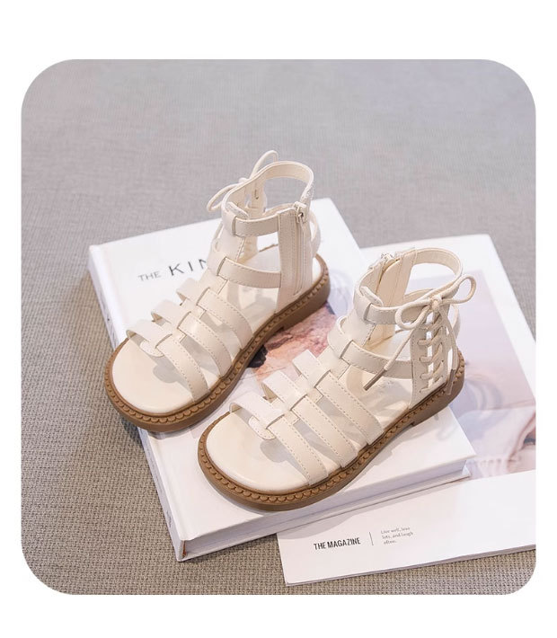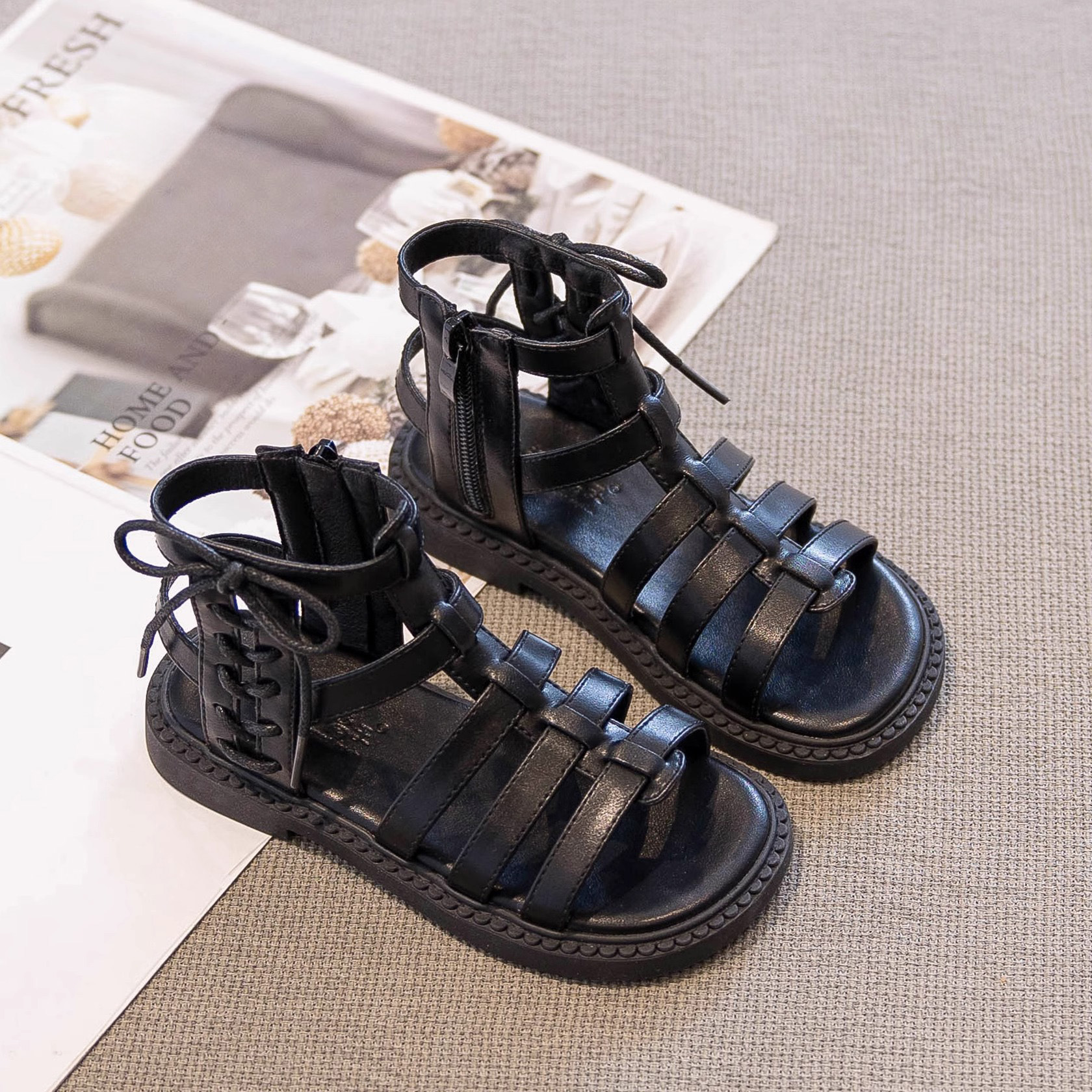 여자 로마 샌들 오픈 발가락 2025 여름 새로운 어린이 신발 해변 신발 공주 스타일 큰 어린이 아기 소녀