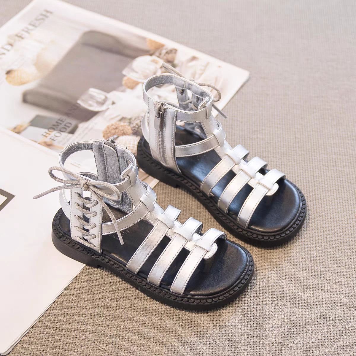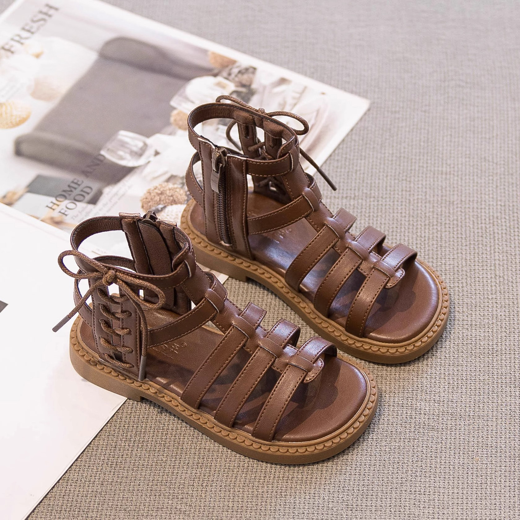 여자 로마 샌들 오픈 발가락 2025 여름 새로운 어린이 신발 해변 신발 공주 스타일 큰 어린이 아기 소녀스토어 가기