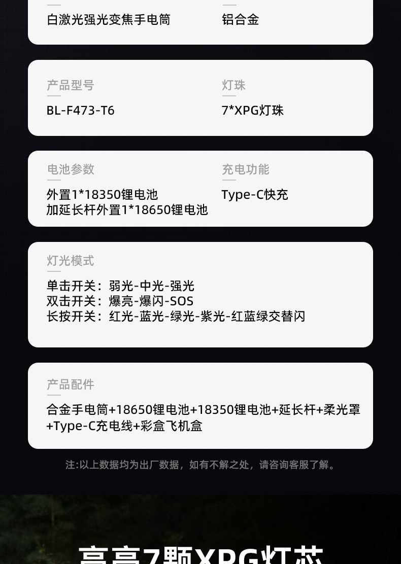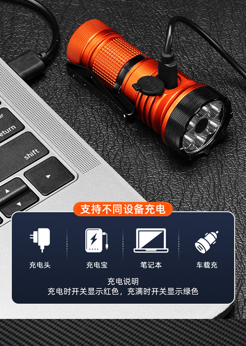 새로운 7 눈 손전등 충전 슈퍼 밝은 장거리 led 보라색 홈 야외 클립 캡 다기능 강한 자기