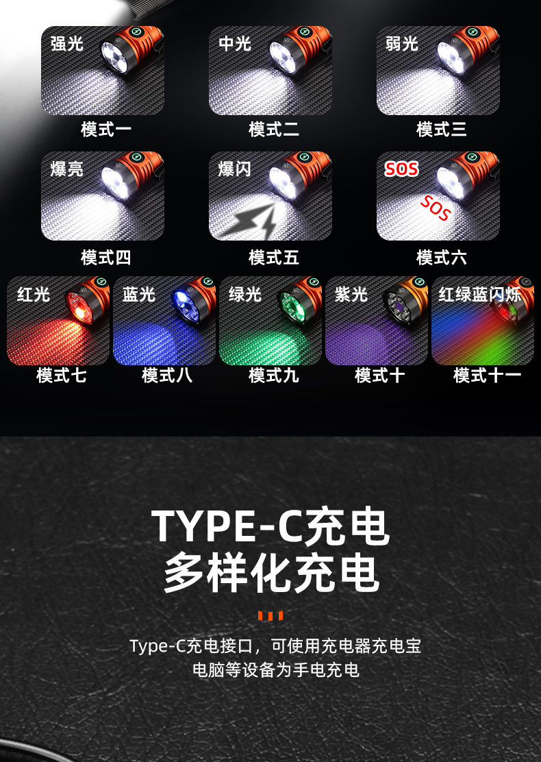 새로운 7 눈 손전등 충전 슈퍼 밝은 장거리 led 보라색 홈 야외 클립 캡 다기능 강한 자기스토어 가기