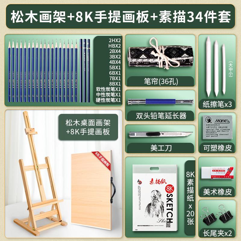 • 소나무 이젤 8K 휴대용 [스케치 도구 세트 34]]