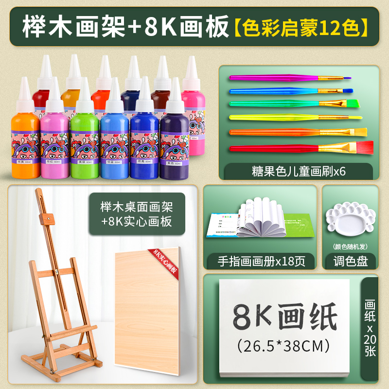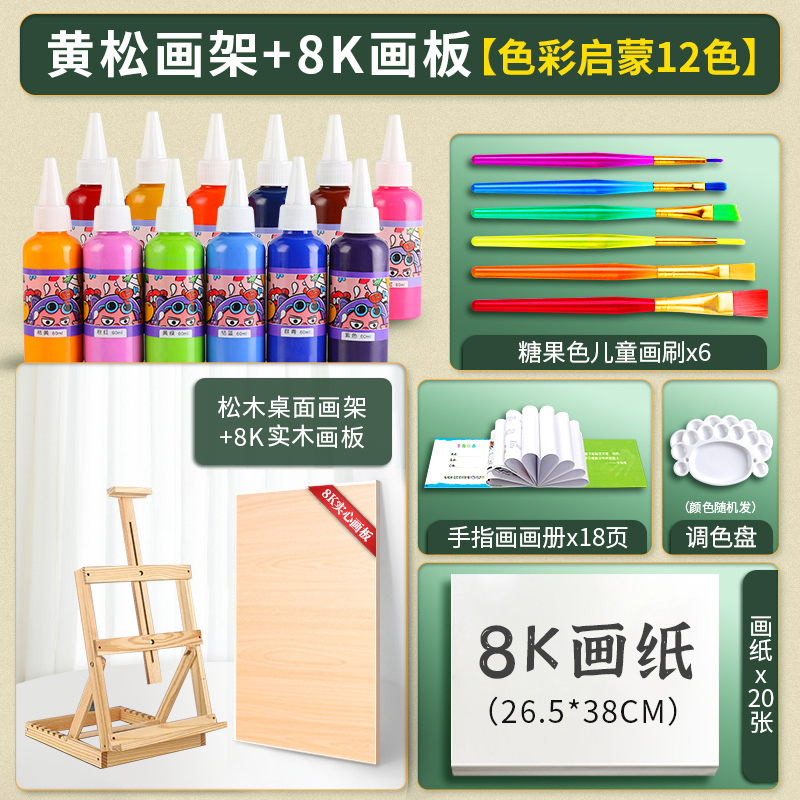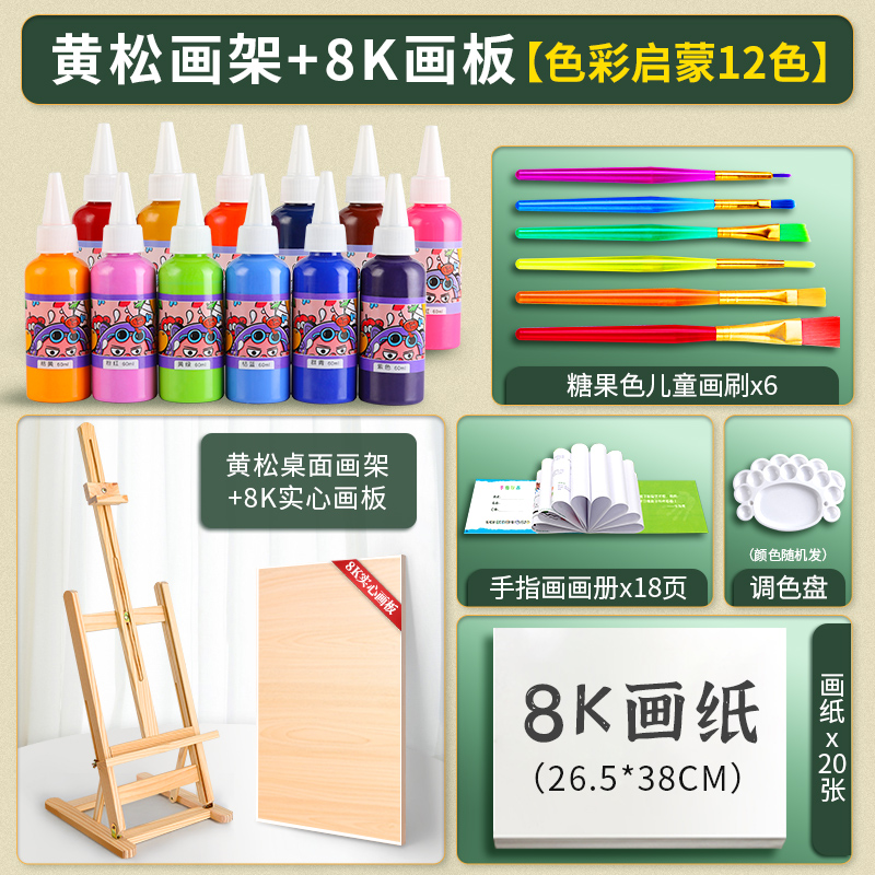 • 소나무 이젤 8K 드로잉 보드 12 색 어린이 손가락 페인트