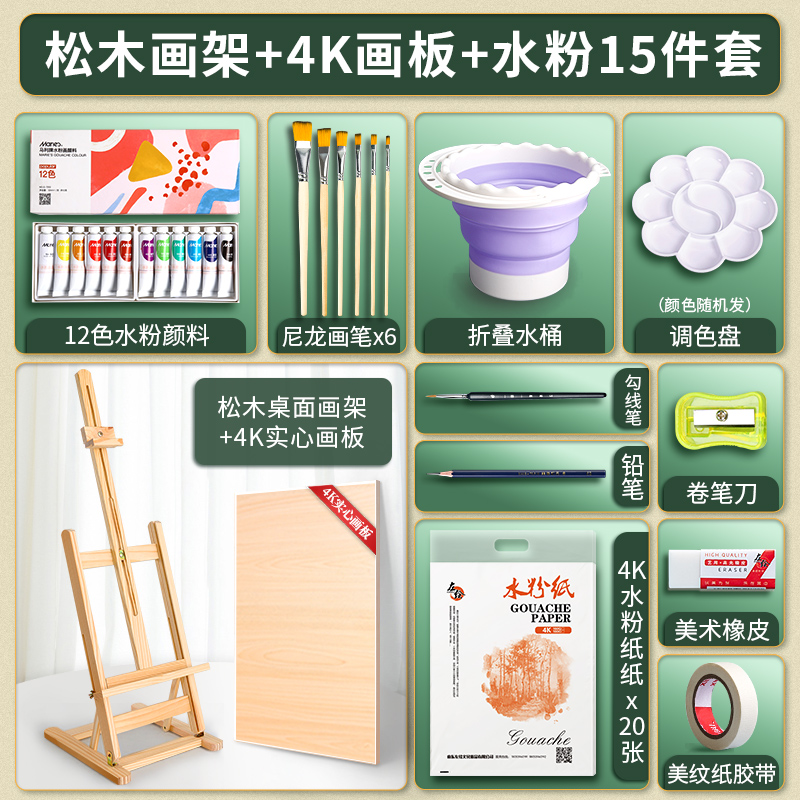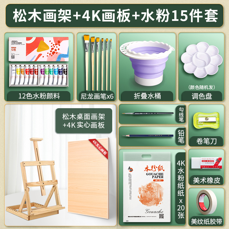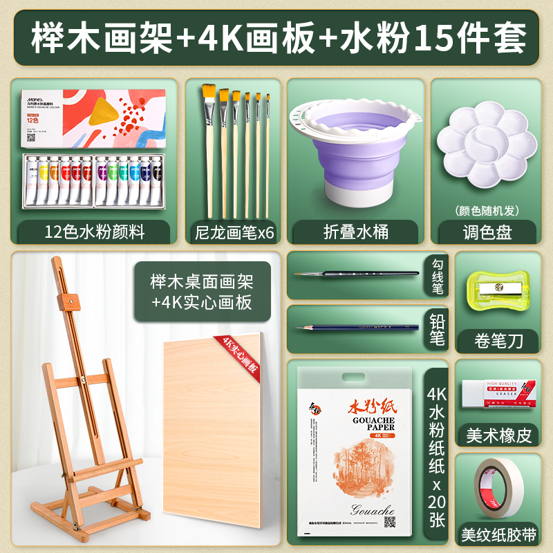 • 조절 가능한 소나무 이젤 4K 드로잉 보드 [구 아슈 15 피스 세트]
