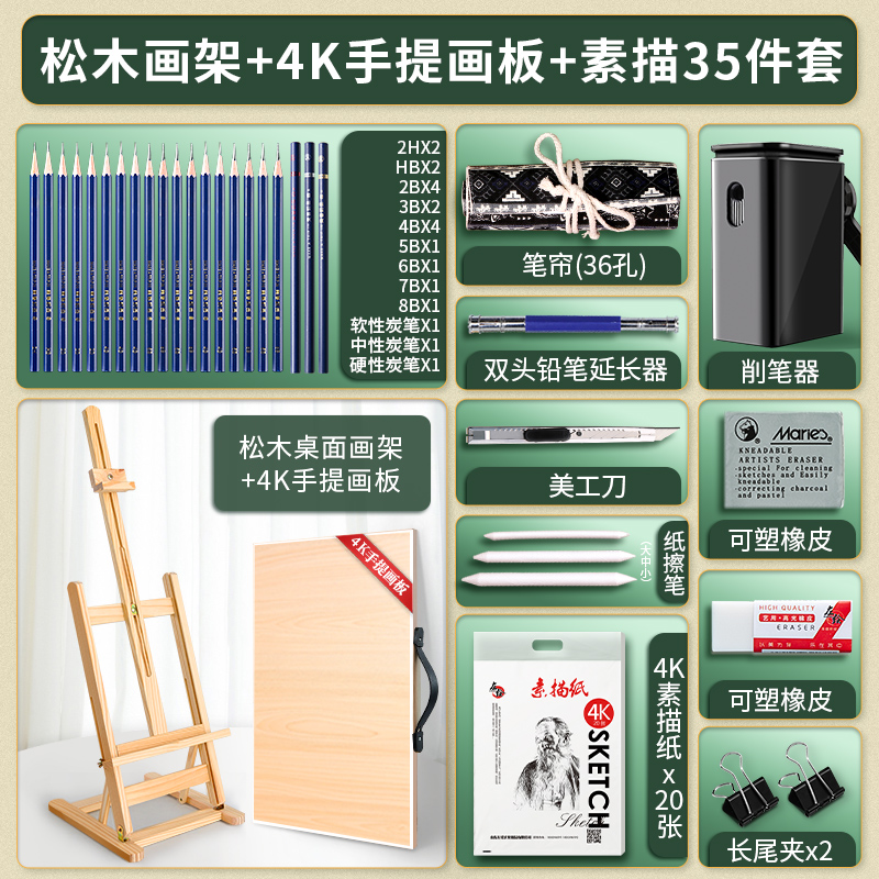 • 소나무 이젤 4K 휴대용 드로잉 보드 [스케치 도구 세트 35]]