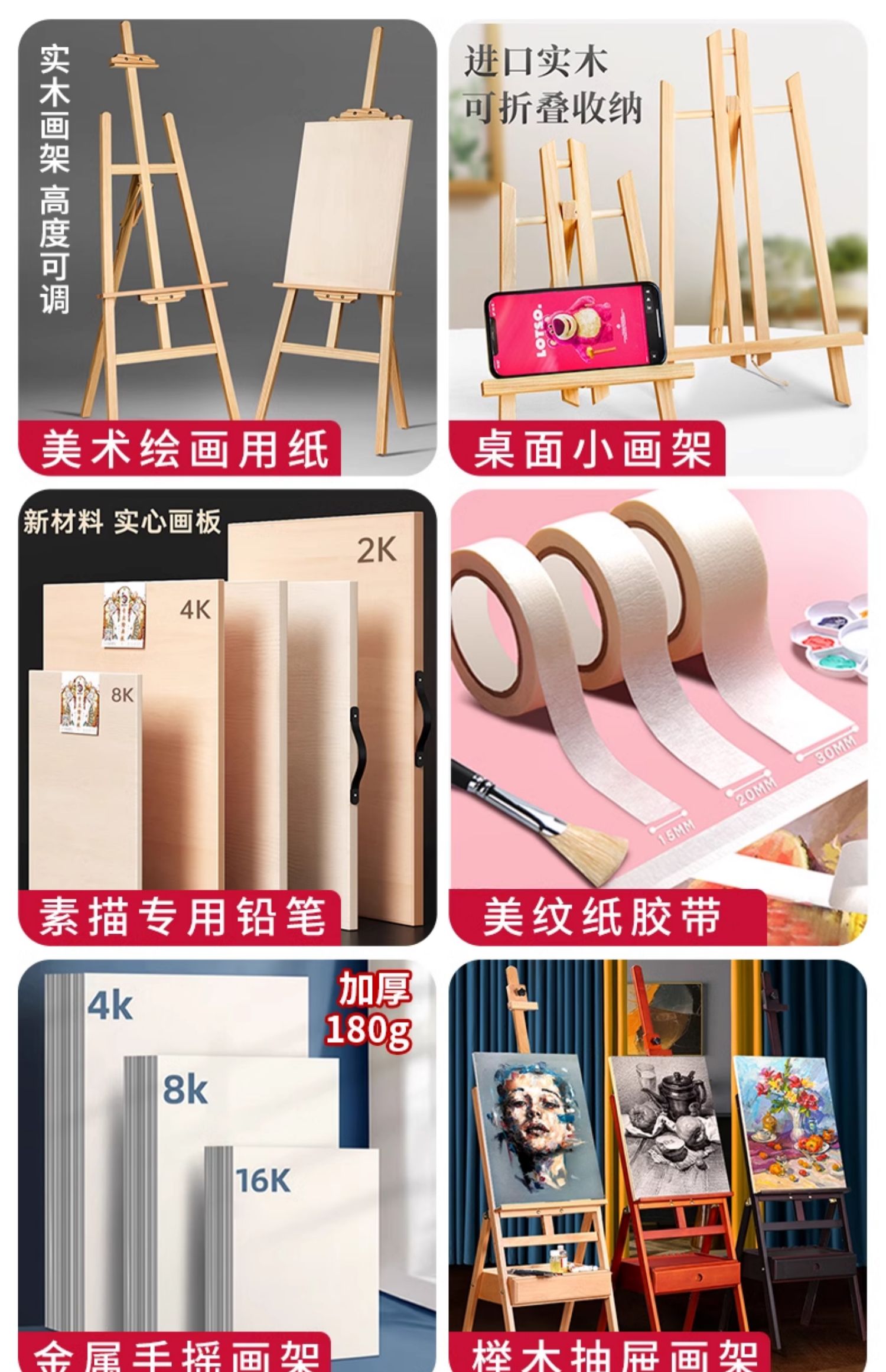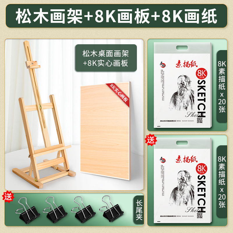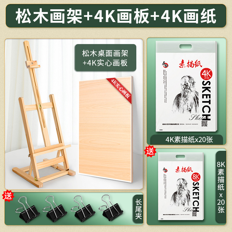 • 조절 가능한 소나무 이젤 4K 휴대용 드로잉 보드 [스케치 도구 세트 35]]