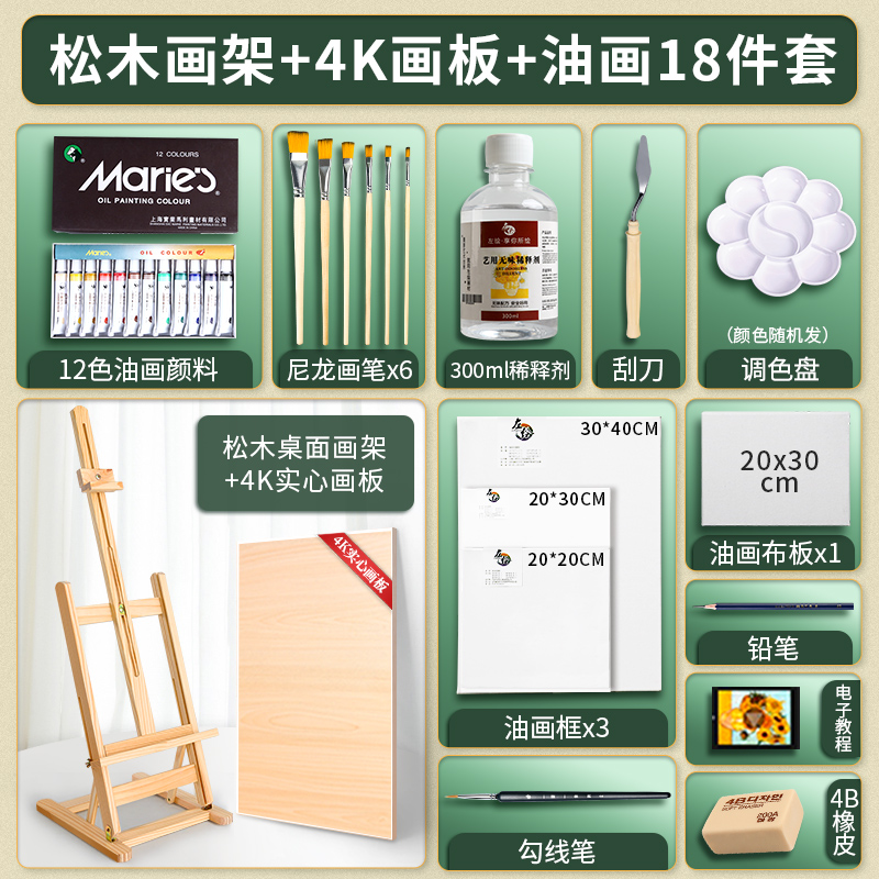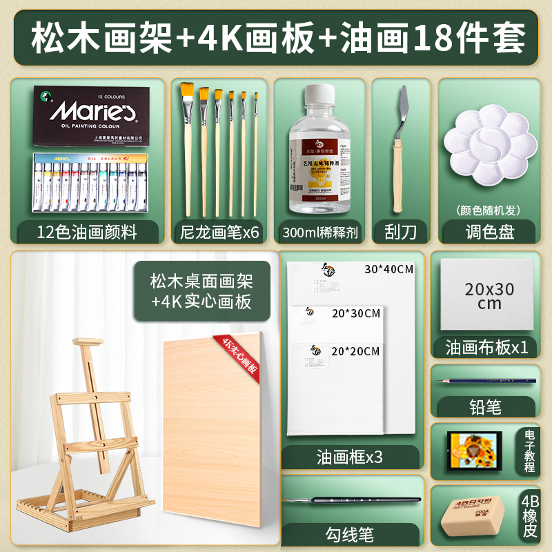 • 조절 가능한 소나무 이젤 4K 드로잉 보드 [오일 페인트 세트 18]]