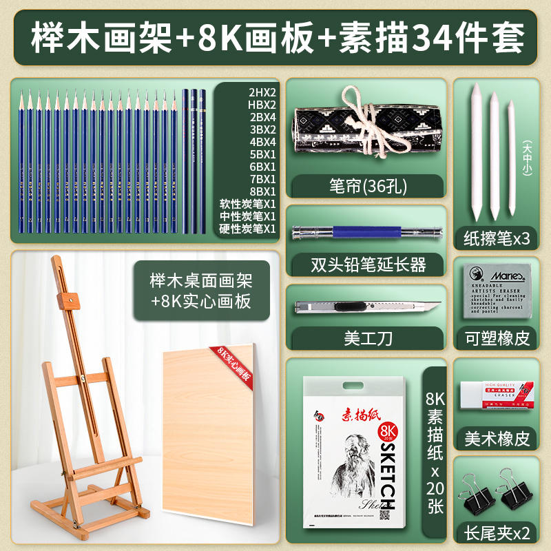 • 너도밤 나무 이젤 8K 드로잉 보드 [스케치 도구 세트 34]]