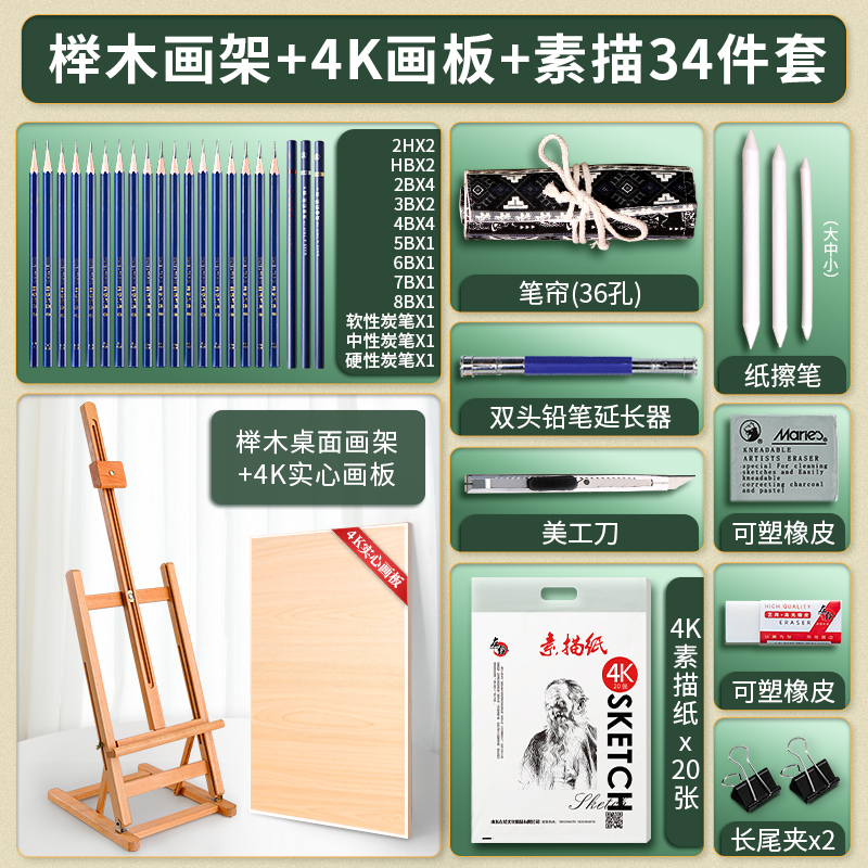• 너도밤 나무 이젤 4K 드로잉 보드 [스케치 도구 세트 34]]