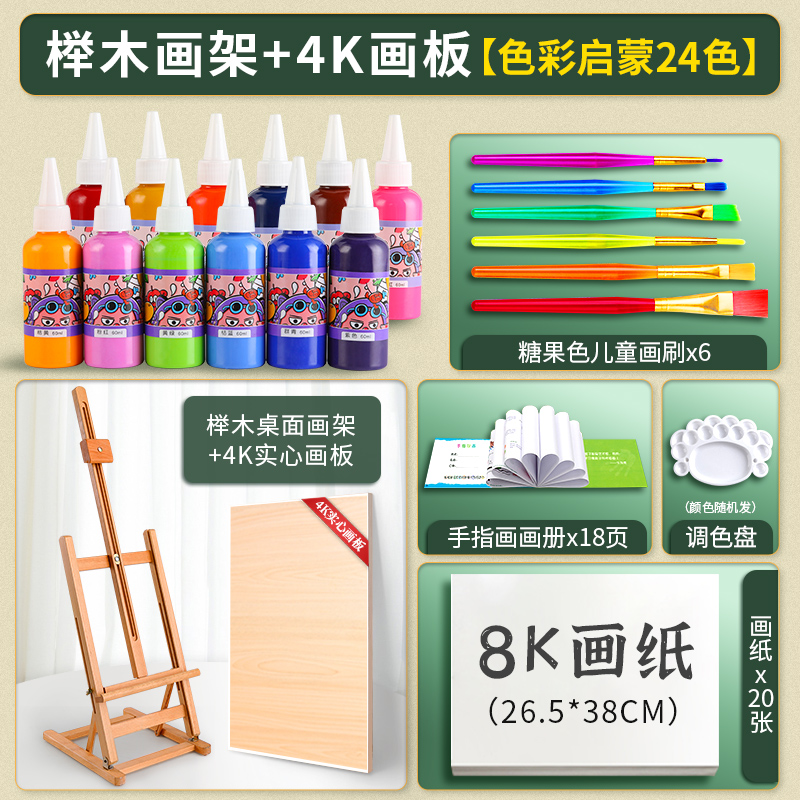 • 너도밤 나무 이젤 4K 드로잉 보드 24 컬러 어린이 손가락 페인트