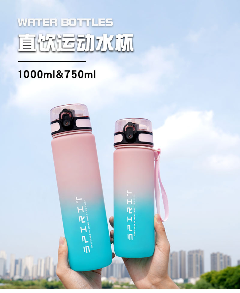 1L 대용량 직접 마시는 스포츠 컵 32oz 국경 그라데이션 공간 컵 학생 여름 야외 플라스틱 컵스토어 가기