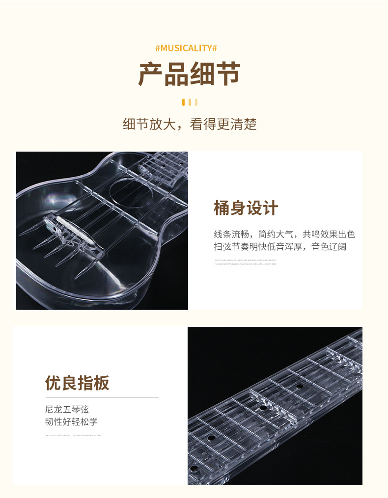 21 인치 투명 플라스틱 우쿨렐레 4 현 작은 기타 초급 학생들은 음악 악기 우쿨렐레를 배웁니다.