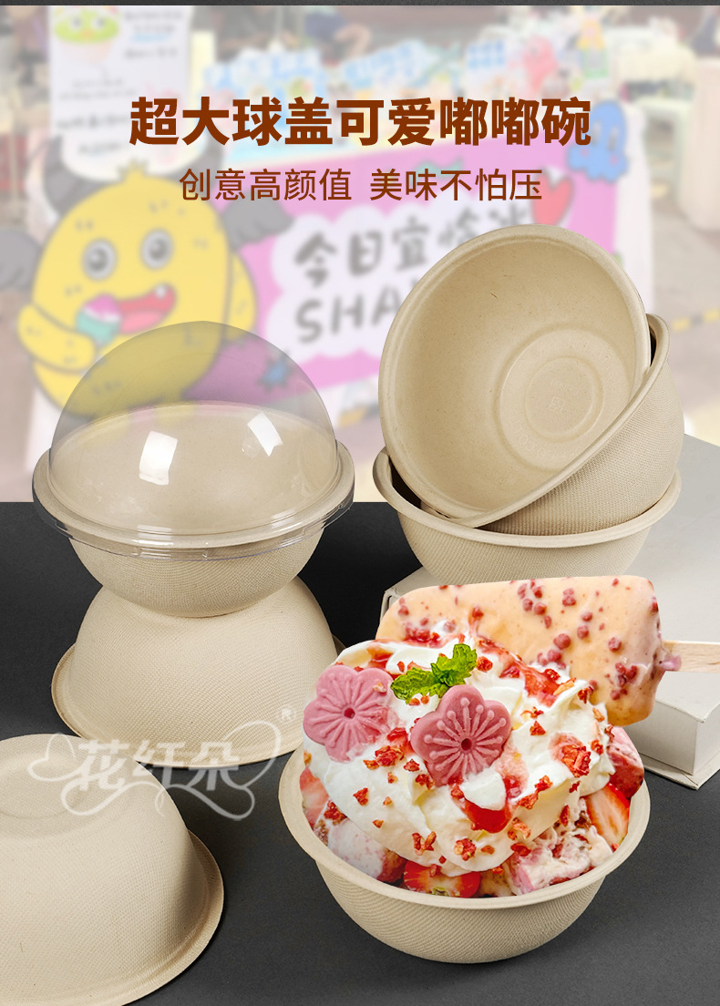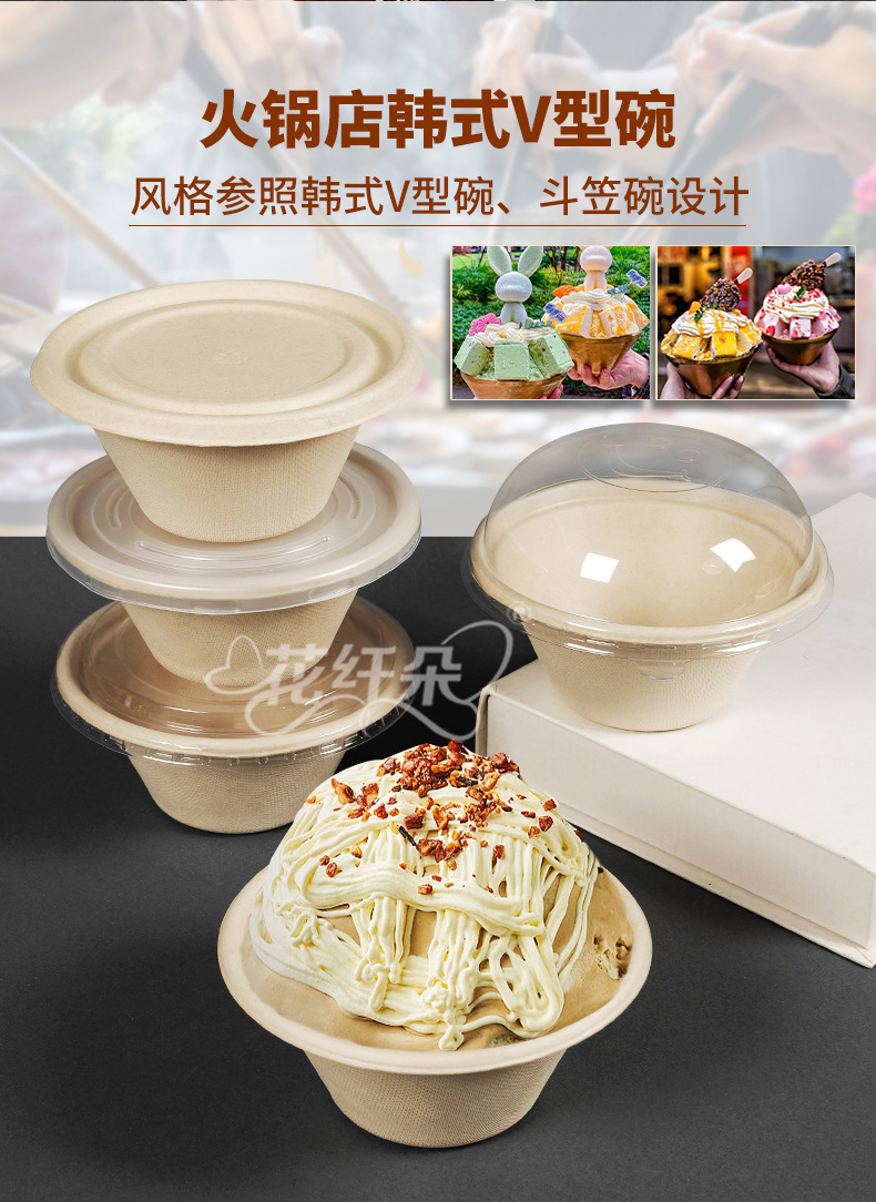 한국식 그물 붉은 면화 종이 그릇 일회용 창조적 인 바람 디저트 그릇 상업 도매 전체 상자 빙수 눈송이스토어 가기