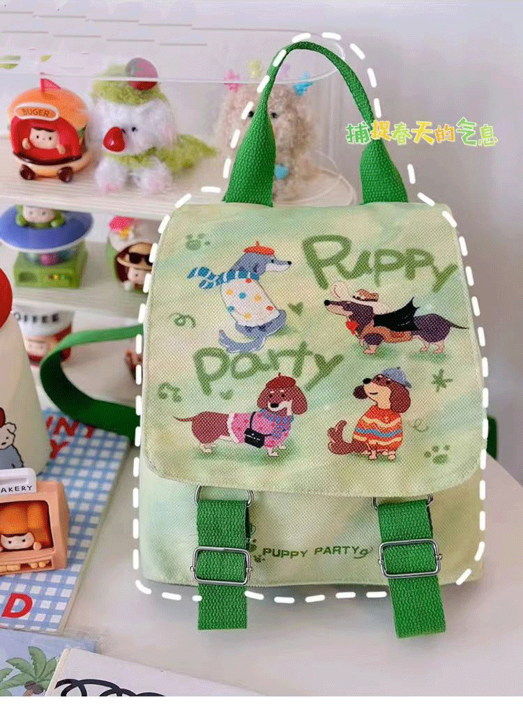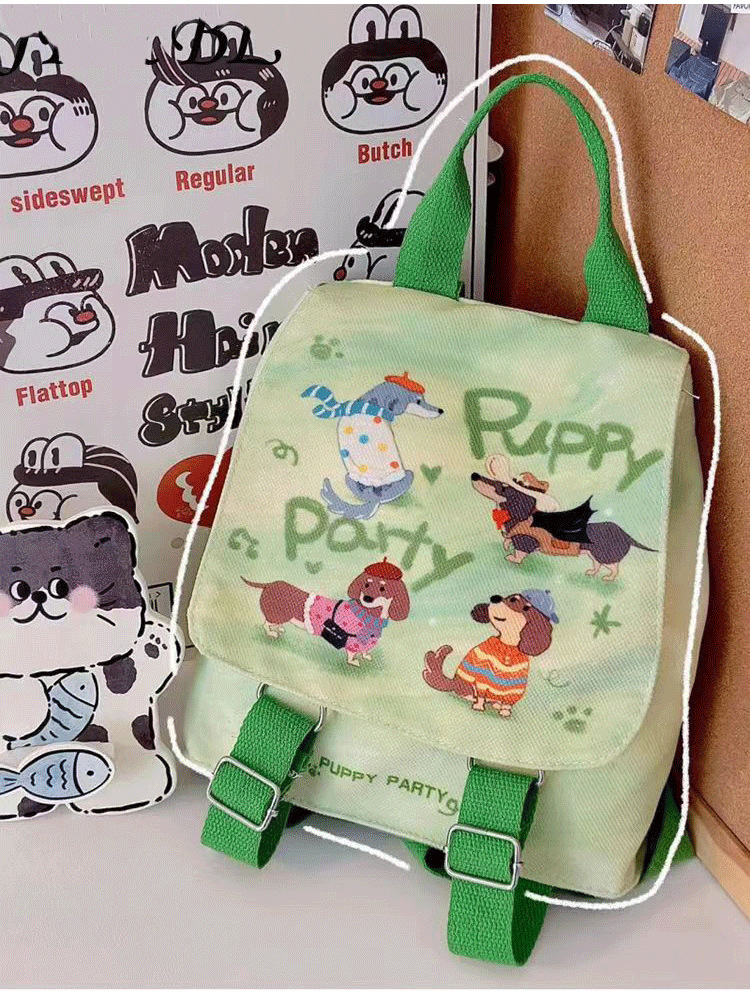 강아지 파티 배낭 학교 가방 학생 귀여운 경량 신선한 캔버스 미니 작은 만화 여행 배낭