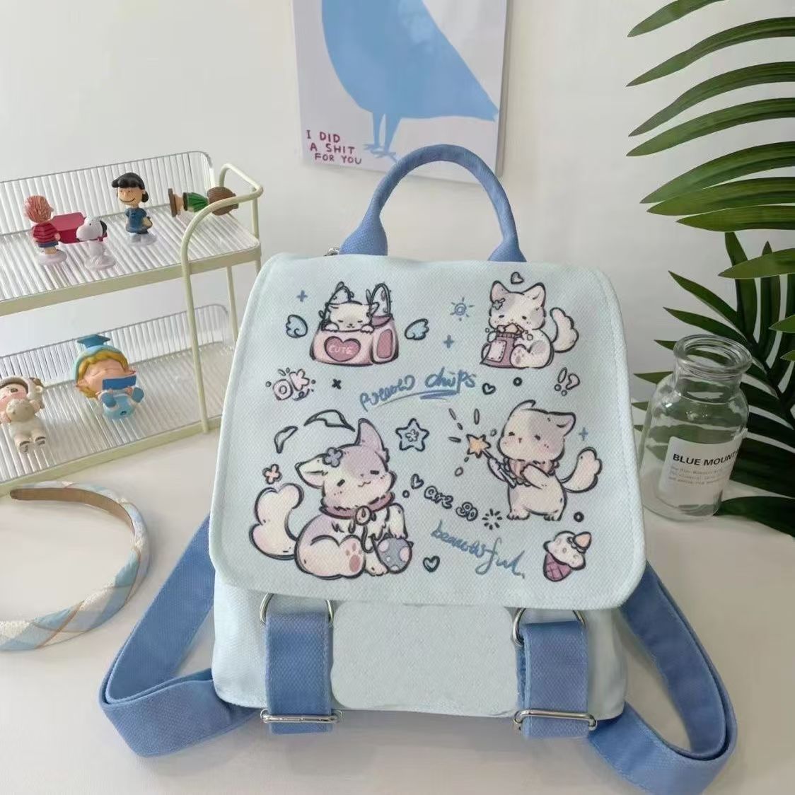 강아지 파티 배낭 학교 가방 학생 귀여운 경량 신선한 캔버스 미니 작은 만화 여행 배낭스토어 가기