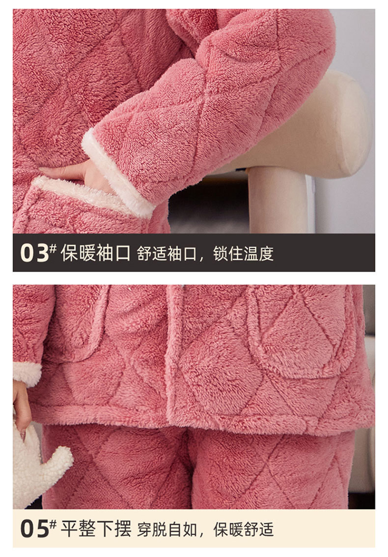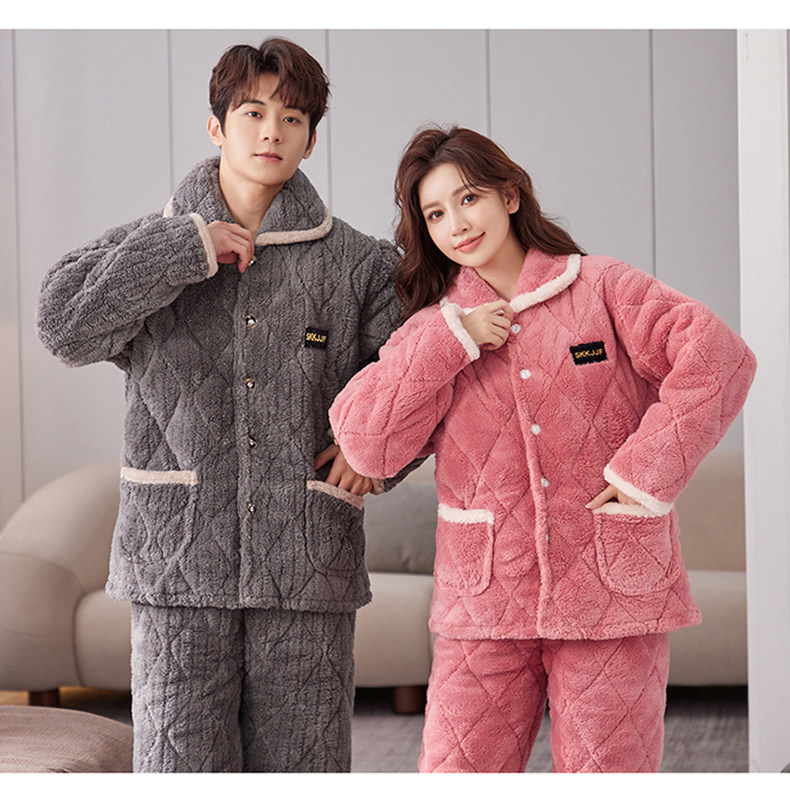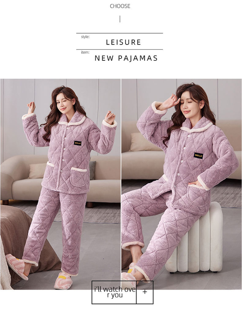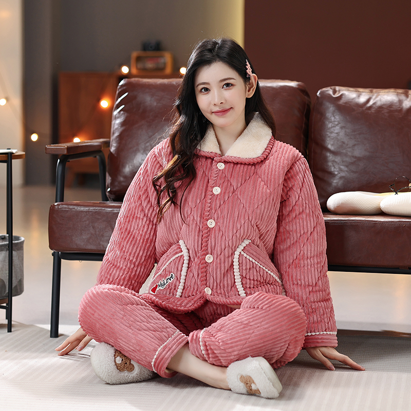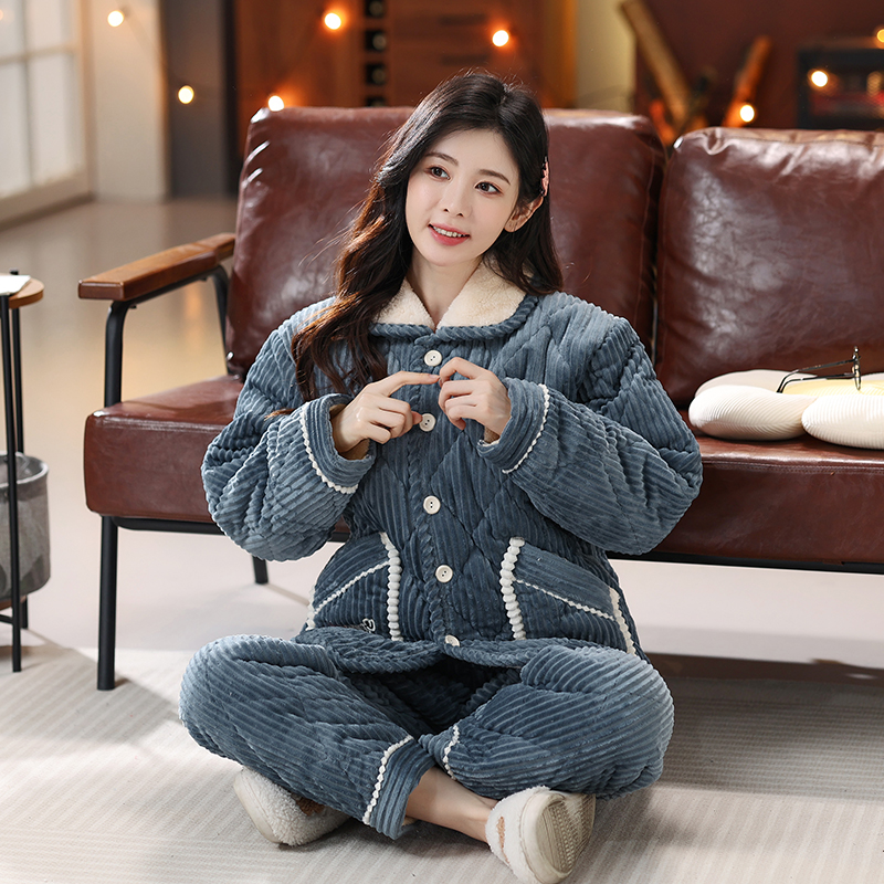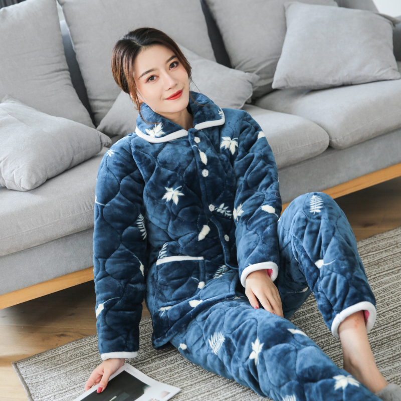 잠옷 여성의 겨울 두꺼운 기모 3 층 면화 재킷 따뜻한 세트 플란넬 플러스 사이즈 겉옷 홈 옷스토어 가기